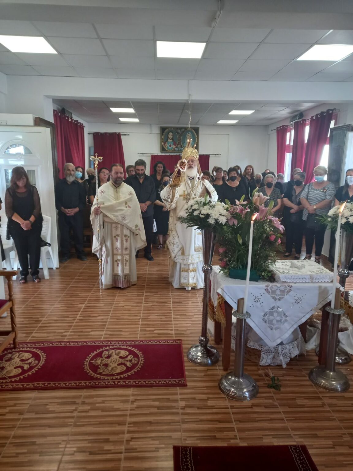 Συλλειτούργησαν ο Οικονόμος Εμμανουήλ Βλαστός και ο Αρχιδιάκονος Μαρίνος Δασκαλάκης, ενώ το ιερό αναλόγιο διακόνησε ο συνταξιούχος Πρωτοπρεσβύτερος Μιχαήλ Βελεγράκης και ο Αναγνώστης κ. Ελευθέριος Σταματάκης. Συμπροσευχόμενος παρέστη ο εφημέριος της ενορίας Πρωτοπρεσβύτερος Παντελεήμων Σταυρουλάκης και ο Πρωτοπρεσβύτερος Δημήτριος Κρουσταλάκης.