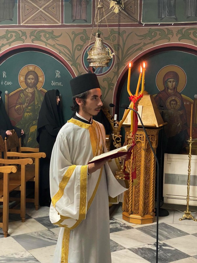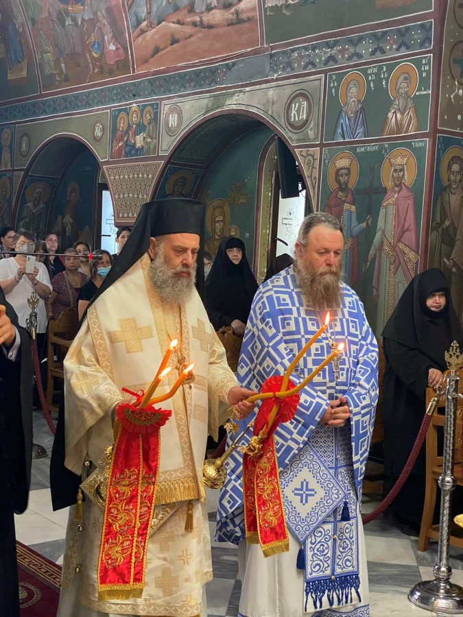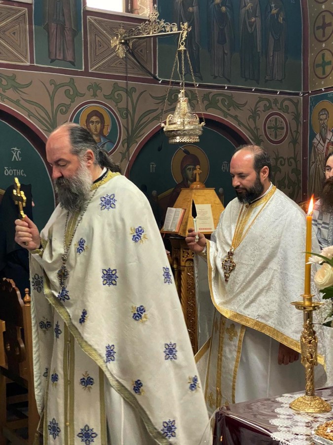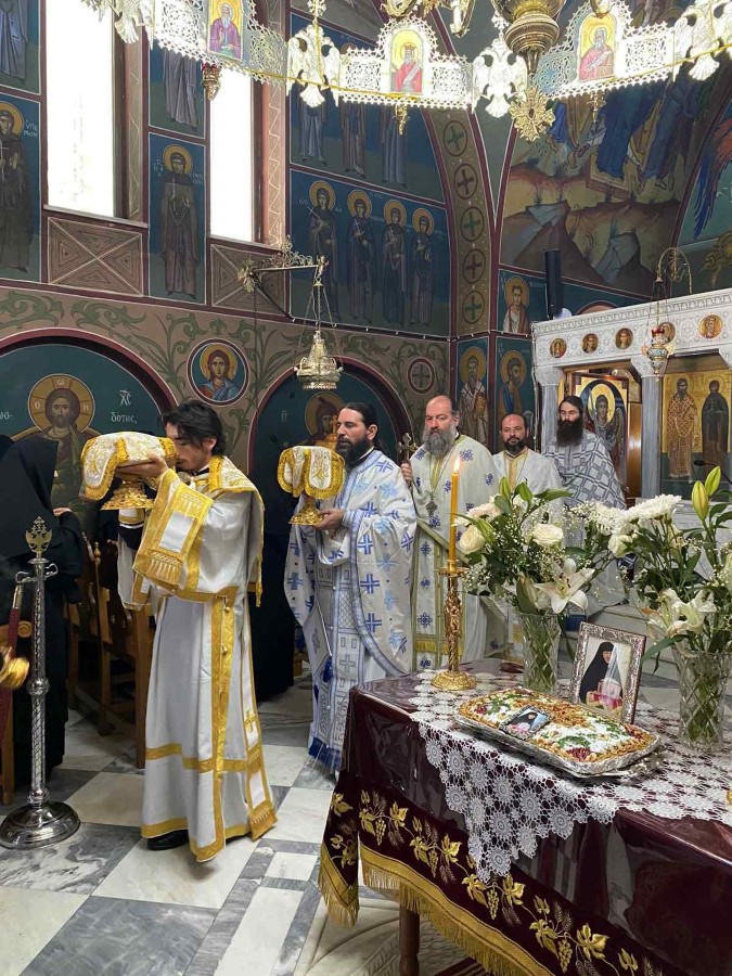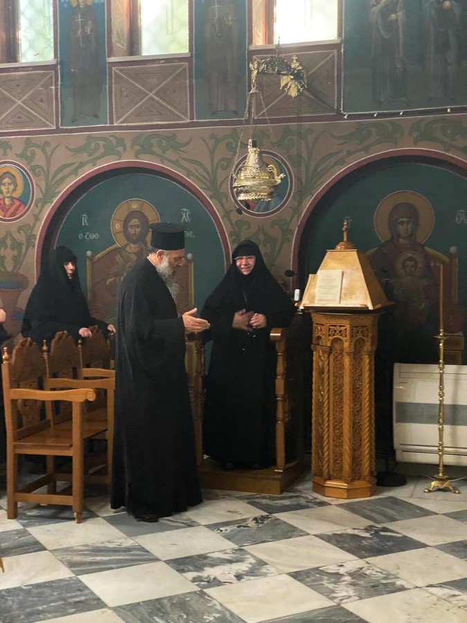 Προ της Απολύσεως, τέλεσε ιερό μνημόσυνο υπέρ αναπαύσεως της ψυχής της μακαριστής Προηγουμένης της Ιεράς Μονής μοναχής Ευγενίας Κλειδαρά.