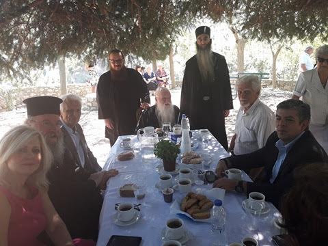 Αμέσως μετά την Απόλυση οι ιερομόναχοι, με άψογο «οικοδεσπότη» τον Καθηγούμενο της Ιεράς Μονής, Αρχιμανδρίτη π. Καλλίνικο Πουλή, έχοντας στο πλευρό τους εθελοντές και εθελόντριες, προσέφεραν καφέ, αναψυκτικά και λουκούμια στους προσκυνητές, κάτω από τα δροσερά πλατάνια στον προαύλιο χώρο τού μοναστηριού, ενώ το μεσημέρι το Ηγουμενοσυμβούλιο παρέθεσε γεύμα, στο οποίο παρακάθισαν ο τοπικός Ποιμενάρχης αλλά και οι προσκεκλημένοι.