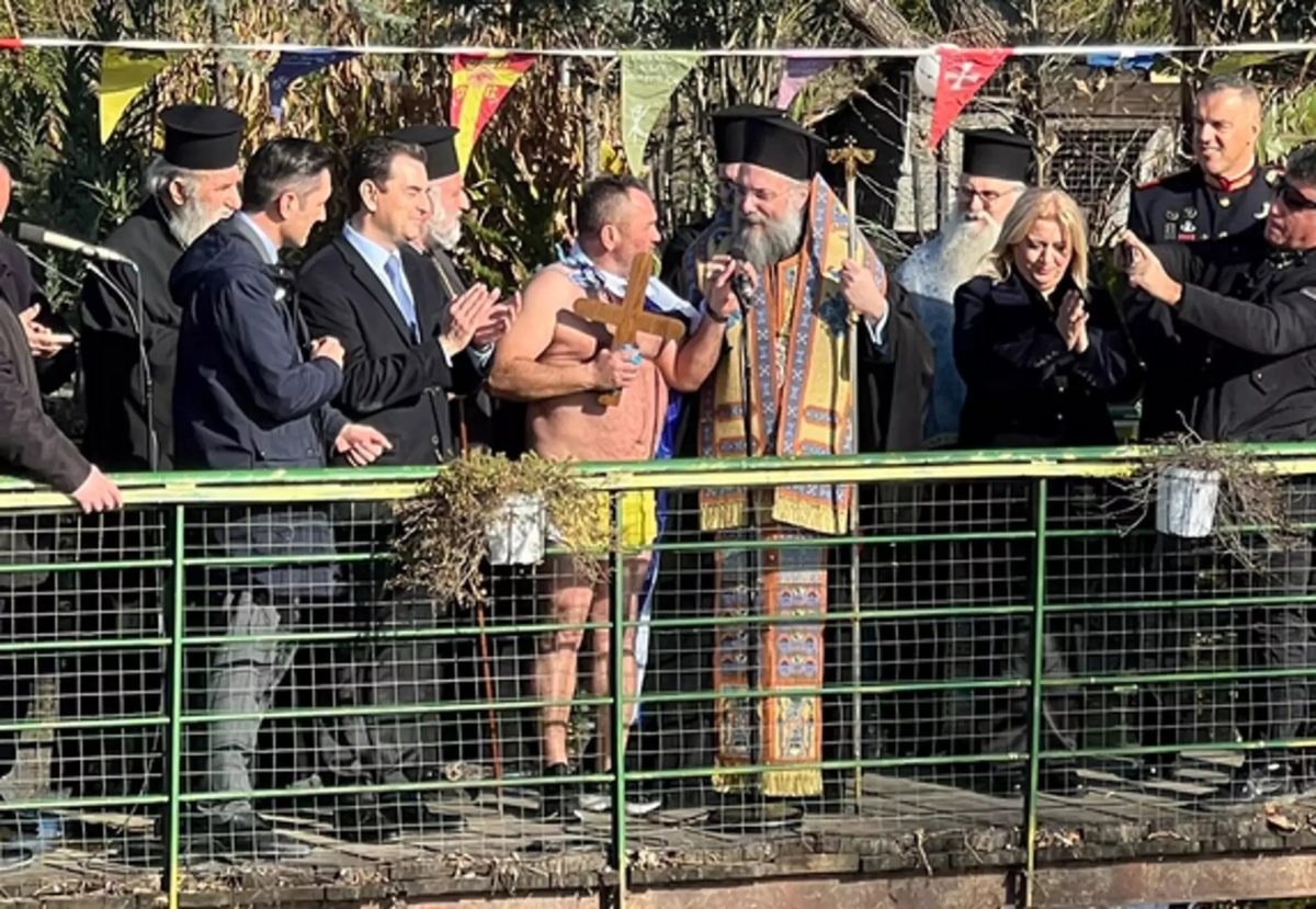 Η συγκίνησή του ήταν πολύ μεγάλη καθώς βούτηξε στα παγωμένα νερά για να χαρίσει το Σταυρό στην κόρη του που βγήκε ζωντανή από το σιδηροδρομικό δυστύχημα στα Τέμπη.