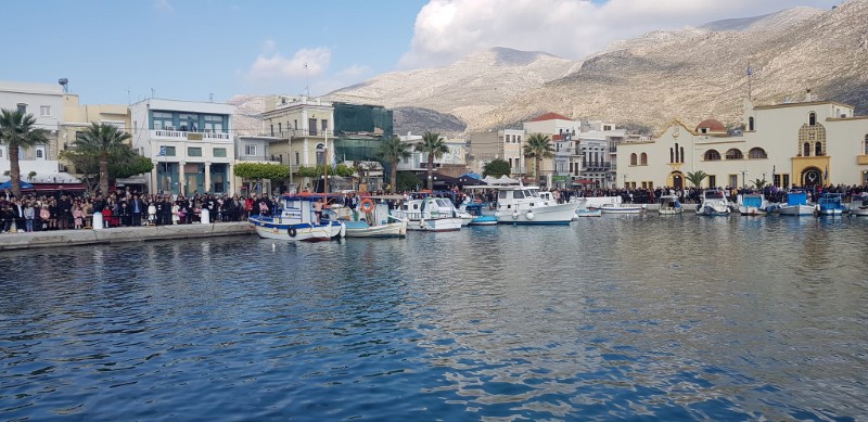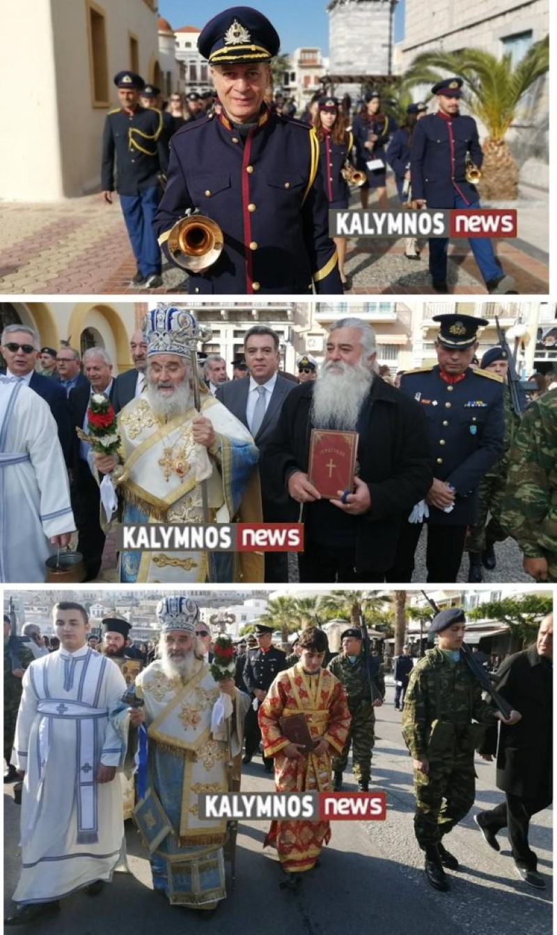 Στις 11 το πρωί έλαβε χώρα Ιερά Πομπή, από τον Ι. Μητροπολιτικό Ναό Σωτήρος Χριστού έως τον κεντρικό λιμένα Καλύμνου.