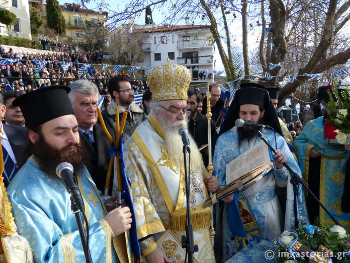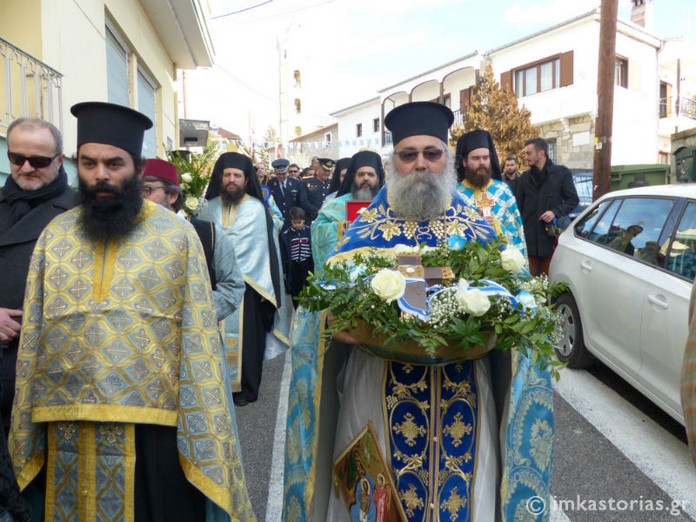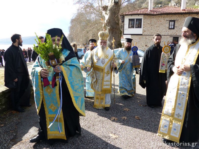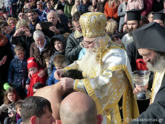 Στη συνέχεια, εν πομπή, κλήρος και λαός κατευθύνθηκαν προς την περιοχή «Σταυρός» για τον αγιασμό των υδάτων και τη ρίψη του Σταυρού στα νερά λίμνης της Καστοριάς και αρκετοί ήταν οι νέοι που βούτηξαν για να πιάσουν τον Σταυρό.
