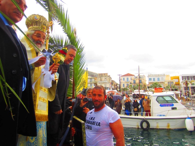 Η παρουσία του κόσμου στην προκυμαία ήταν μικρή σε σχέση με άλλες χρονιές, ενώ τέσσερις γενναίοι έπεσαν στα παγωμένα νερά του λιμανιού. Ο τυχερός της χρονιάς που έπιασε το σταυρό ήταν ο 30χρονος Παντελής Πονήρης, στον οποίο ο μητροπολίτης έδωσε, ως ευλογία, μία εικόνα του Χριστού.