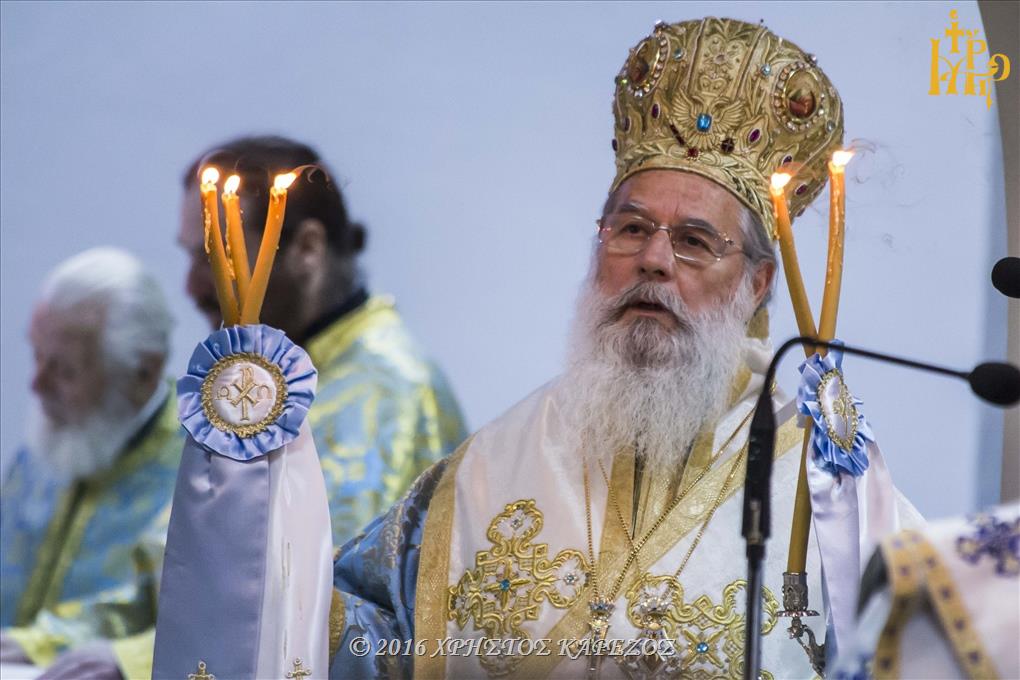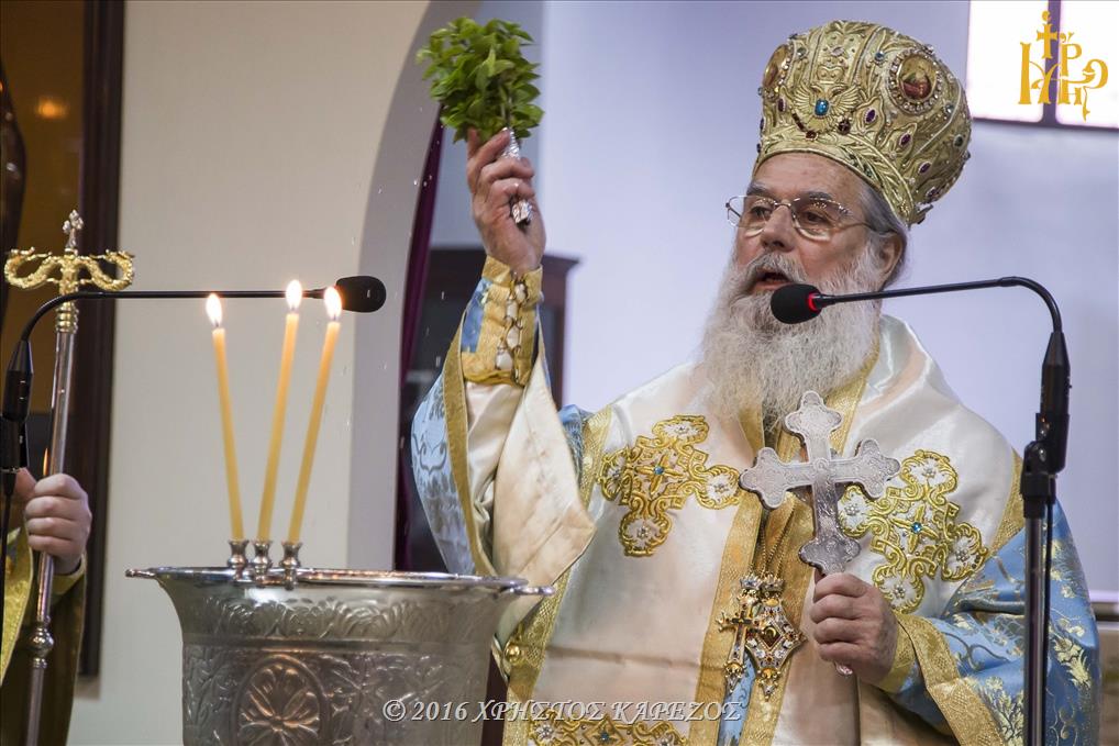 Ο Σεβασμιώτατος, ευχόμενος καλή και ευτυχισμένη χρονιά, επεσήμανε το μήνυμα της μεγάλης εορτής της Ορθοδοξίας, το οποίο είναι ο φωτισμός και η πνευματική αναγέννηση δια του βαπτίσματος. Συνέβη σε όλους τους Χριστιανούς μια φορά κατά την ώρα του προσωπικού βαπτίσματος, συμβαίνει όμως και κάθε έτος την ευλογημένη ημέρα των Θεοφανίων, όπου αγιάζεται όλη η κτίσης και κατ’ αυτόν τον τρόπο το φως νικά το σκοτάδι.