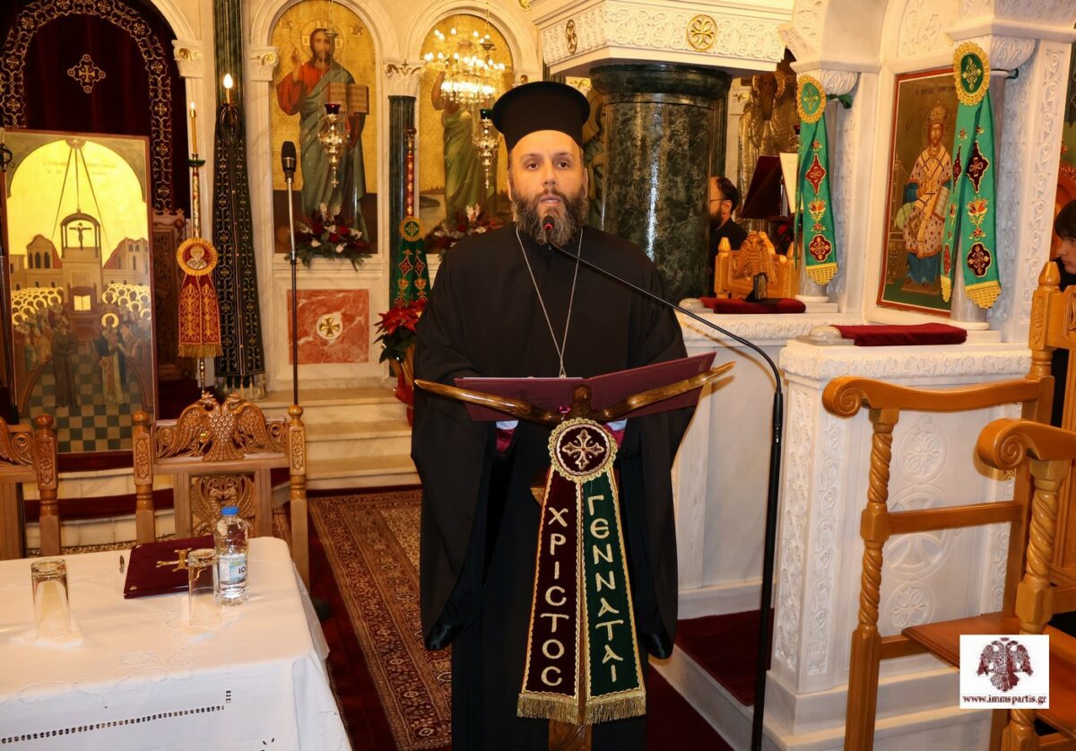 Την εκδήλωση επισφράγισε με τον πατρικό του λόγο ο Σεβασμιώτατος Μητροπολίτης μας κ. Ευστάθιος, ο οποίος αρχικά ευχαρίστησε τους τρεις εισηγητές για τις εμπεριστατωμένες ομιλίες τους, ενώ στάθηκε ιδιαίτερα στον φιλοξενούμενο π. Σεβαστιανό Σωμαράκη, για τον οποίο μίλησε με εγκωμιαστικά λόγια για το ήθος, την θεολογική του κατάρτιση και την προσφορά του σε μία κρίσιμη υπηρεσία της Εκκλησίας της Ελλάδος. Επίσης, με επαινετικά λόγια μίλησε ο σεπτός Ποιμενάρχης μας για τη χορωδία της Σχολής Βυζαντινής Μουσικής της τοπικής μας Εκκλησίας, που πλαισίωσε με εξαιρετικό τρόπο την εσπερίδα. Ολοκληρώνοντας, επισήμανε την πολύτιμη προσφορά των Πατέρων της Ορθοδοξίας, υπογράμμισε ότι η Εκκλησία πρέπει να χαρακτηρίζεται από ομόνοια και να έχει στήριγματά της την θυσιαστική αγάπη και την αλήθεια.