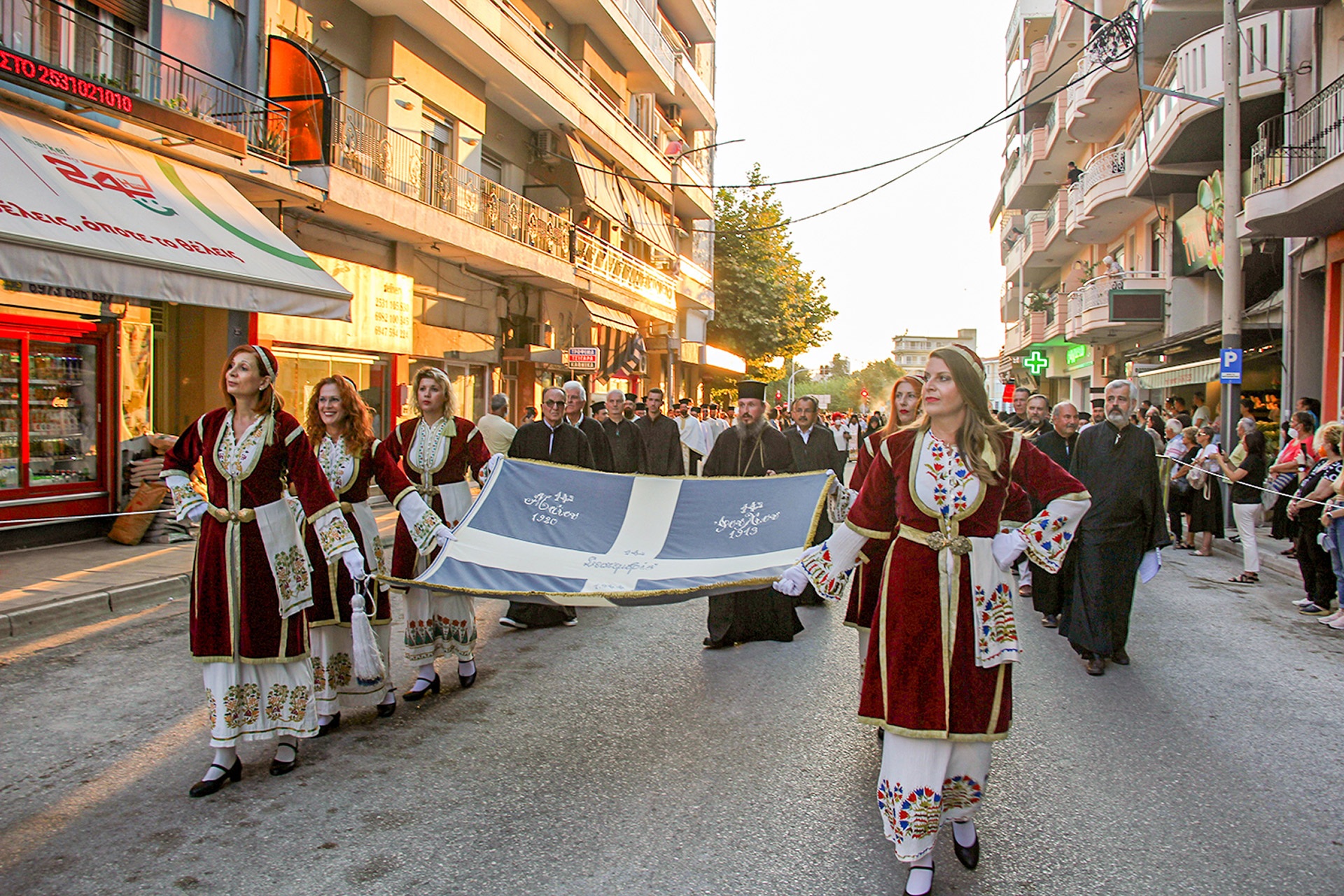 Μετά ακολούθησε η λιτανεία με τουλάχιστον 20 Συλλόγους της Ροδόπης με τα λάβαρά τους να συμμετέχουν, όλους τους επισήμους και πολλούς πιστούς. Η λιτανεία ακολούθησε την διαδρομή Μακεδονίας, Ορφέως, πλατεία Ειρήνης και στη συνέχεια κατέλεξε στο «Σπαθί» όπου έγινε η επίσημη υποδοχή. Η κυκλοφορία των οχημάτων είχε διακοπεί σε όλο το κέντρο της πόλης, ενώ καθ’ όλη τη διάρκεια της λιτανείας κόσμος παρακολουθούσε από τις δύο πλευρές του δρόμου.