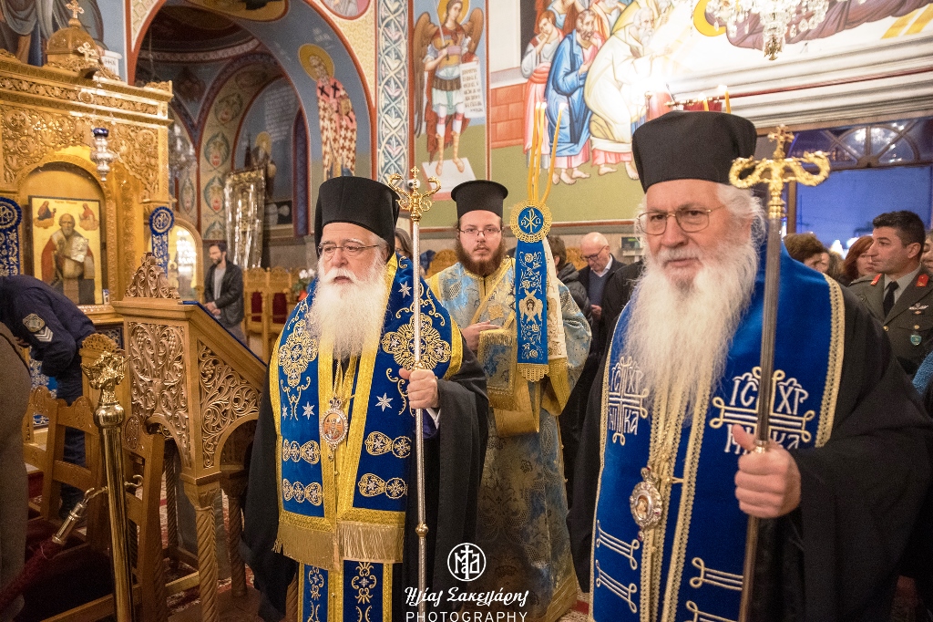 Κατά την διάρκεια του Εσπερινού, ο Σεβ. Ποιμενάρχης μας κ. Ιγνάτιος προσφώνησε αδελφικώς τον φιλοξενούμενο Ιεράρχη, με τον οποίο συνδέονται στενά από τα νεανικά τους χρόνια. Τον ευχαρίστησε για την αποδοχή του αιτήματός του για την μετακομιδή της Ιεράς Εικόνος, επισημαίνοντας ότι «τούτες τις ημέρες η Παναγία μας γίνεται η Βασίλισσα των καρδιών μας, η υψηλή φιλοξενουμένη του Μητροπολιτικού μας Ναού, στο πρόσωπο της οποίας ξεκινά ο φετινός εορτασμός του Πολιούχου μας». Αναφέρθηκε στο έργο του κ. Γεωργίου, ως Ηγούμενος της Μονής του Οσίου Λουκά και ως Ποιμενάρχης της Μητροπόλεως, που επί σειρά ετών διαποίμανε ο νυν Αρχιεπίσκοπος κ. Ιερώνυμος και εξέφρασε την ευγνωμοσύνη του για την μεγάλη ευλογία της ελεύσεως της Ιεράς Εικόνος. Ο Σεβασμιώτατος καλωσόρισε τους προσκυνητές εκ του Ορχομενού, επικεφαλής των οποίων ήταν ο Πρόεδρος του Δημοτικού Συμβουλίου της πόλης κ. Λάμπρος Ρόδιος.