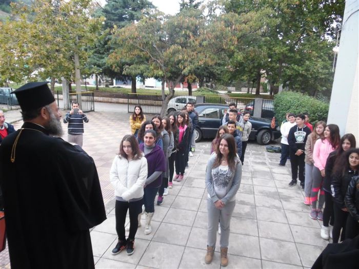 Ο Σεβασμιώτατος Μητροπολίτης Θεσσαλιώτιδος κ. Τιμόθεος, το πρωί της Τρίτης 25 Οκτωβρίου 2016 επισκέφθηκε τις σχολικές μονάδες του Γυμνασίου Κέδρου και του Γυμνασίου-Λυκείου Λεονταρίου συνοδευόμενος από τον υπεύθυνο του Γραφείου Νεότητος της Ιεράς Μητροπόλεως π. Παναγιώτη Καλλιώρα.