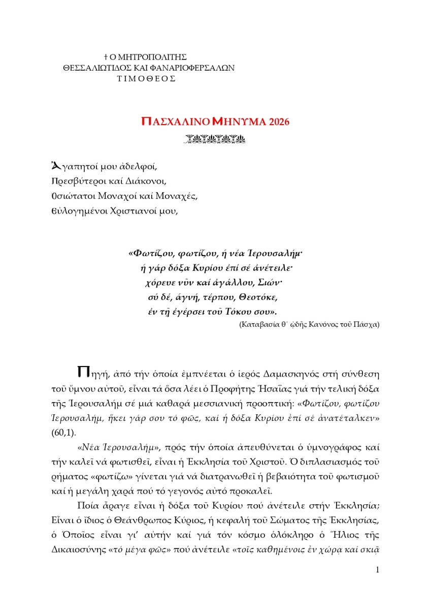 Θεσσαλιώτιδος Τιμόθεος: Η Εκκλησία του Χριστού χορεύει και σκιρτά από χαρά ΕΛΛΑΔΑ, ΜΗΤΡΟΠΟΛΕΙΣ 11.04.2026 | 18:15