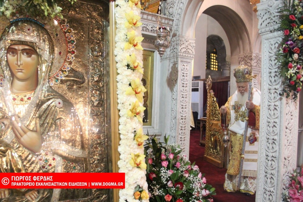 Ο Οικουμενικός Πατριάρχης προεξάρχει της Θείας Λειτουργίας με συλλειτουργούς τον Αρχιεπίσκοπο Αμερικής κ. Δημήτριο και τους Μητροπολίτες Θεσσαλονίκης κ. Άνθιμο, Ιταλίας κ. Γεννάδιο, Γερμανίας κ. Αυγουστίνο, Τρανουπόλεως κ. Γερμανό, Ρεθύμνης κ. Ευγένιο, Φιλίππων κ. Προκόπιο, Φθιώτιδος κ. Νικόλαο, Σιδηροκάστρου κ. Μακάριο, Αλεξανδρουπόλεως κ. Άνθιμο, Νεαπόλεως κ. Βαρνάβα, Λαγκαδά κ. Ιωάννη, Μιλήτου κ. Απόστολο, και Ηλιουπόλεως κ. Θεόδωρο.