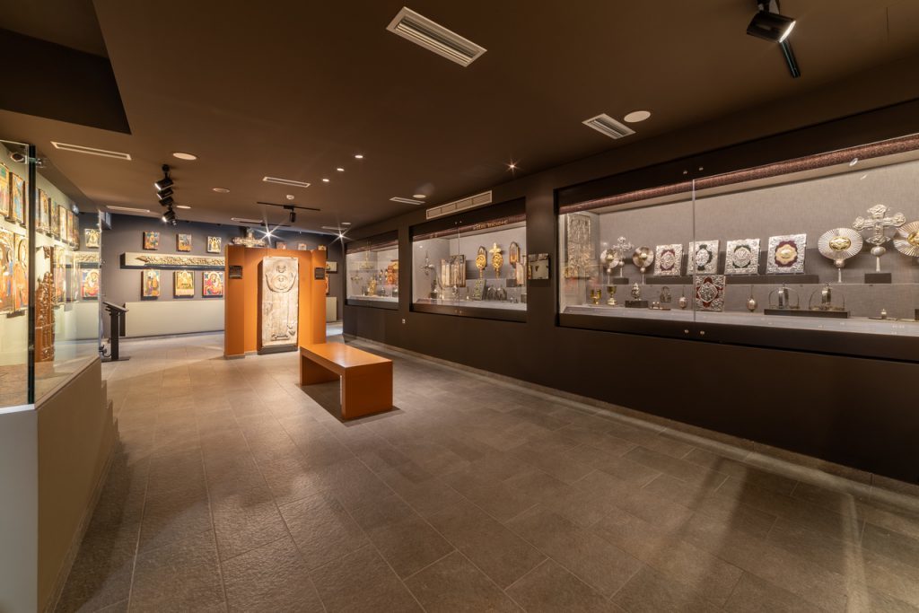 Ιδιαίτερης σημασίας στην έκθεση είναι η ωραία εικόνα της αγίας Μαρίνας με χρονολογία 1889, καθώς αποτελεί το πρωιμότερο γνωστό μέχρι σήμερα ενυπόγραφο και χρονολογημένο έργο του Θεόφιλου, ενώ για την καλλιτεχνική του αξία, την αρμονική σύνθεση και την χρωματική ένταση ξεχωρίζει το ζωγραφιστό βημόθυρο (1899) από το ναό της Αγίας Μαρίνας στις Μηλιές.