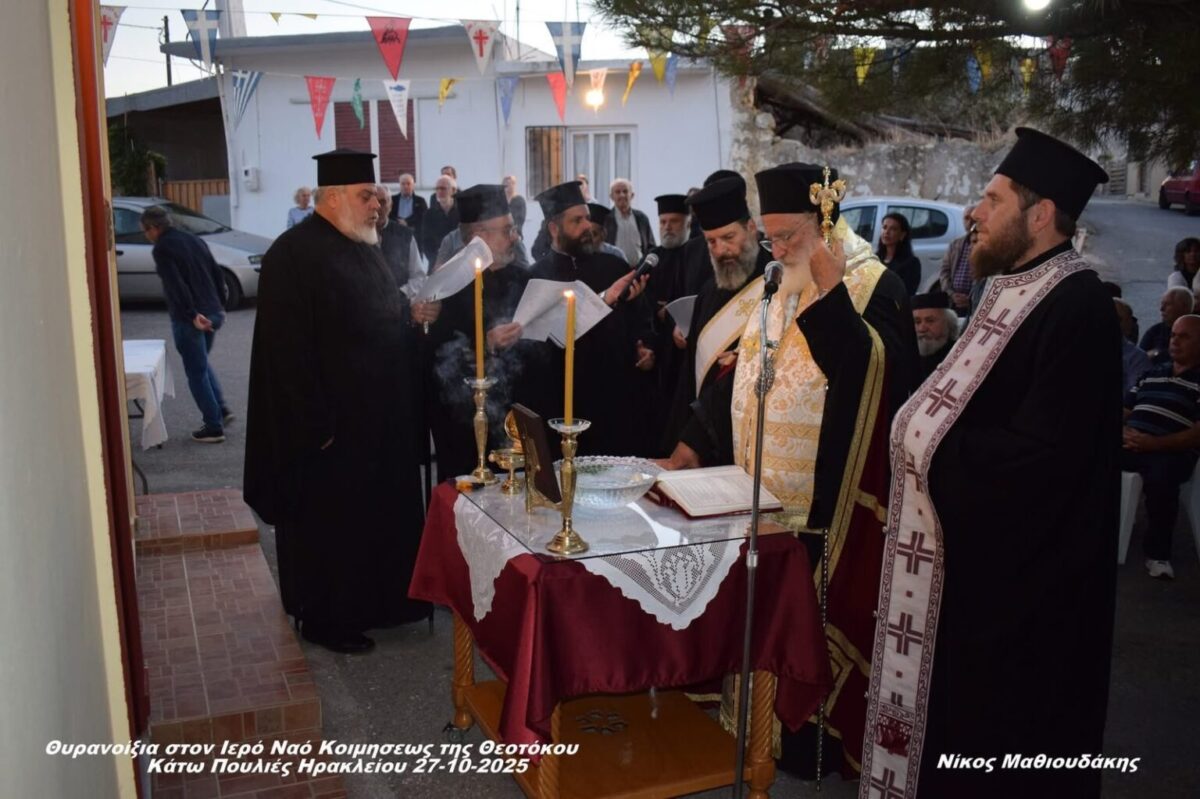 Την Δευτέρα 27 Οκτωβρίου το απόγευμα, ο Σεβ. Μητροπολίτης μας κ. Ανδρέας τέλεσε με λαμπρότητα τα Θυρανοίξια του Ιερού Ναού Κοιμήσεως της Θεοτόκου στις Κάτω Πουλιές Μονοφατσίου, ο οποίος είχε υποστεί σοβαρές ζημιές από τον σεισμό της 27ης Σεπτεμβρίου 2021 και αποκαταστάθηκε με την φροντίδα του εφημέριου της ενορίας, π. Νικολάου Σταματάκη μετά του ενοριακού του Συμβουλίου.