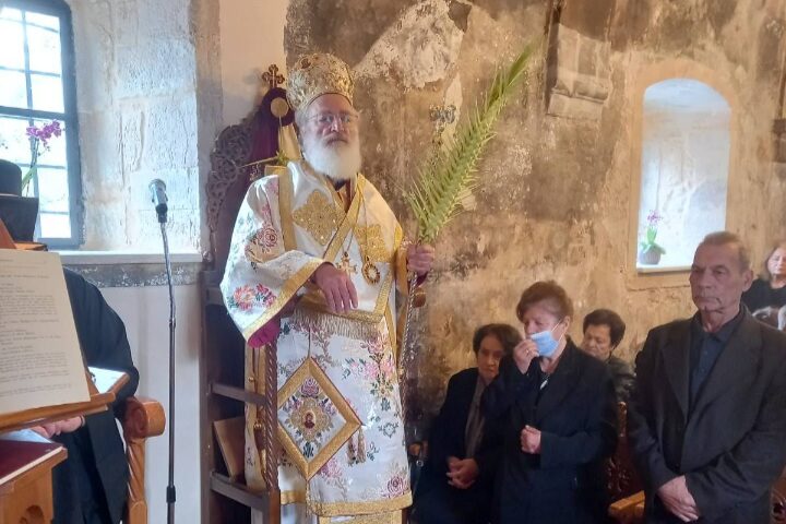 Στον λόγο του ο Σεβασμιώτατος, ευχαρίστησε εγκαρδίως τους εφημέριους της Ενορίας, Πανοσ. Αρχιμ. και Αρχ. Επίτροπο της Α’ Αρχ. Περιφέρειας π.Φιλόθεο Πηγιάκη και τον Πρωτοπρεσβύτερο π.Αλέξανδρο Παναγιωτάκη, τον Δήμαρχο Αρχανών-Αστερουσίων κ. Μανόλη Κοκοσάλη και όσους συνετέλεσαν για την ανακαίνιση του Ναού. Την Κυριακή των Βαΐων ο σεπτός Ποιμενάρχης, τέλεσε την Θεία Λειτουργία μετά του Πανοσ. Αρχιμ. π.Φιλόθεου Πηγιάκη, του Πρωτοπρεσβυτέρου π.Αλεξάνδρου Παναγιωτάκη και του Αρχιδιακόνου π.Μαρίνου Δασκαλάκη, ενώ το αναλόγιο διακόνησαν ο Διάκονος π.Πέτρος Αράπογλου και ο Αναγνώστης κ.Ελευθέριος Σταματάκης.