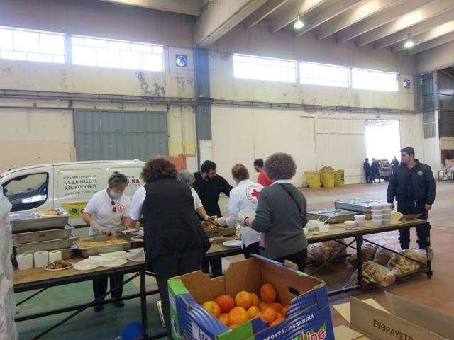 700 μερίδες μαγειρεμένου φαγητού προσέφερε η ιερά Μητρόπολη Κυδωνίας στους 340 μετανάστες που φιλοξενούνται στο εκθεσιακό κέντρο στην Αγιά Χανίων.