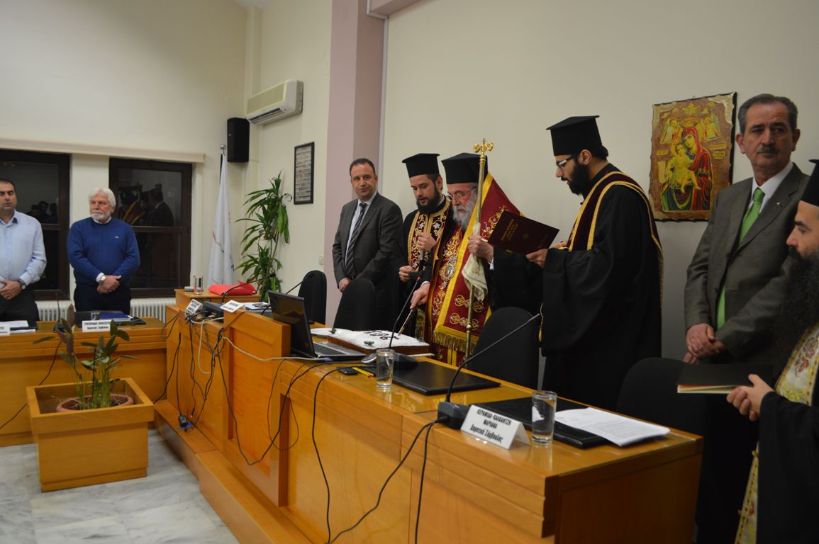 Ο Σεβασμιώτατος Μητροπολίτης Ελευθερουπόλεως κ. Χρυσόστομος μας απευθυνόμενος στους Δημοτικούς Συμβούλους του Δήμου μας, ευχήθηκε ο Κύριος ημών Ιησούς Χριστός να εμπνέει κλίμα ενότητας και αγάπης μεταξύ τους και να φωτίζει κάθε καλή τους σκέψη καθώς και να ενισχύει κάθε καλή προσπάθεια που σκοπό θα έχει το κοινό καλό των Δημοτών και της ευρύτερης περιοχής του Δήμου Παγγαίου. Τέλος ευχαρίστησε πάντας για την καλή και ουσιαστική συνεργασία τους με την τοπική Εκκλησία με απώτερο σκοπό την διακονία των πολιτών του Δήμου.