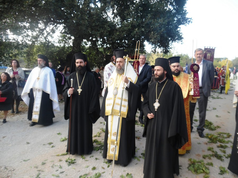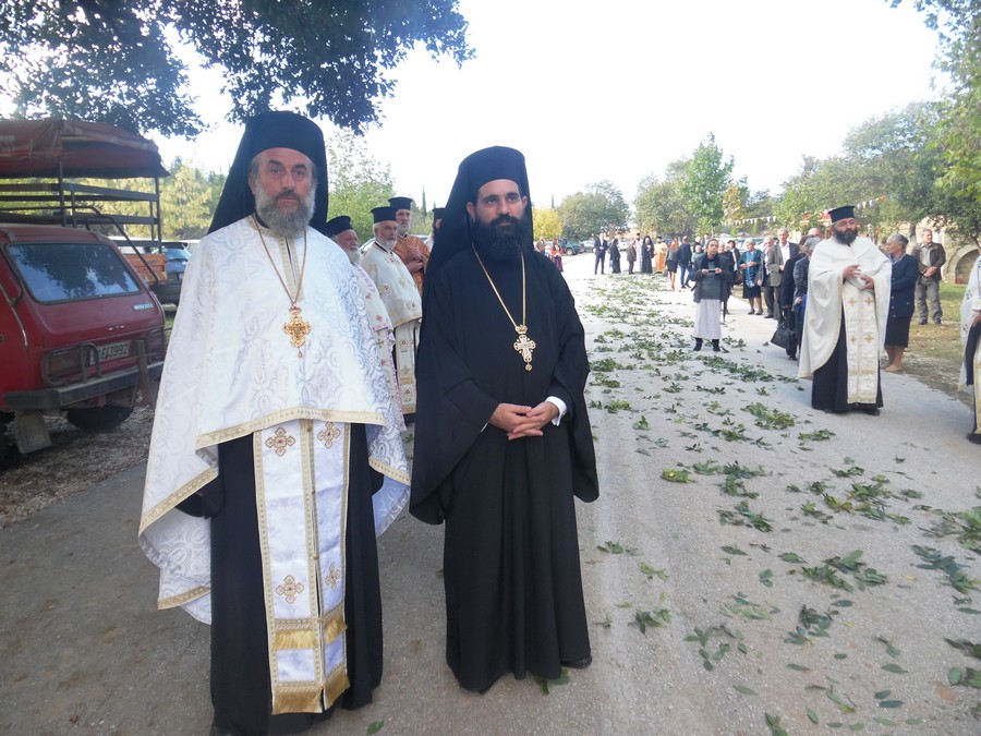 Τον Σεπτό Ποιμενάρχη μας πλαισίωναν, ο Πρωτοσύγκελλος της Ιεράς μας Μητροπόλεως Αρχιμανδρίτης π. Αμφιλόχιος Παπανδρέου, ο Καθηγούμενος της Ιεράς Μονής Παναγίας Κασσωπίτρας νήσου Κερκύρας Αρχιμανδρίτης π. Πολύκαρπος Ζερβός, ο υπεύθυνος του Ιερού Προσκυνήματος Αρχιμανδρίτης π. Τιμόθεος Μπατέλης καθώς και αρκετοί κληρικοί της ευρύτερης περιοχής.