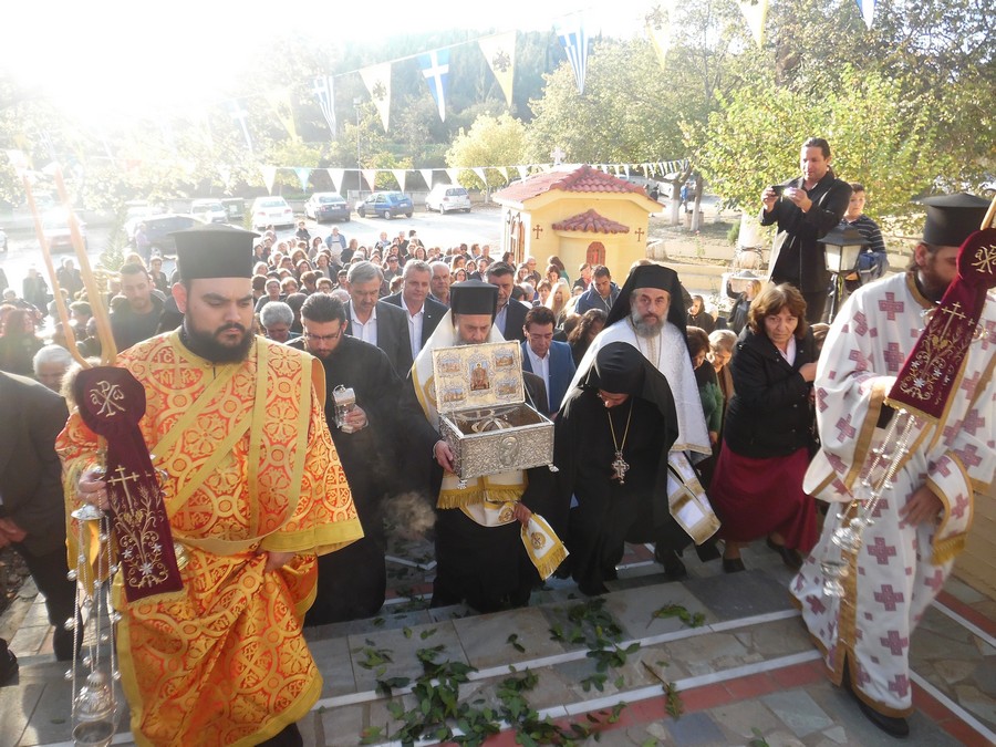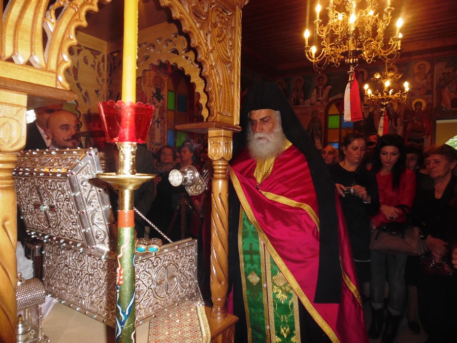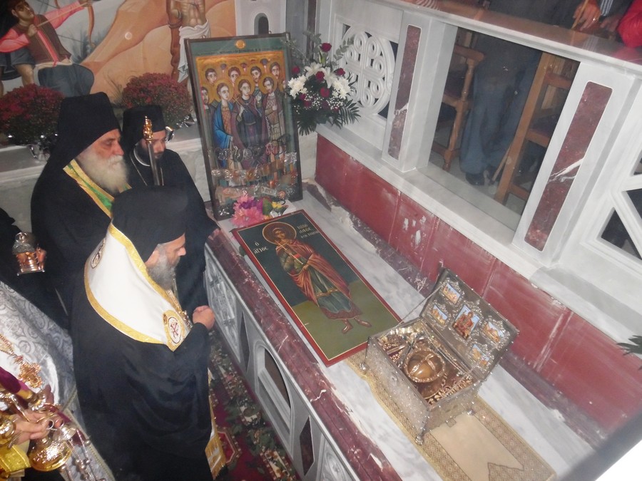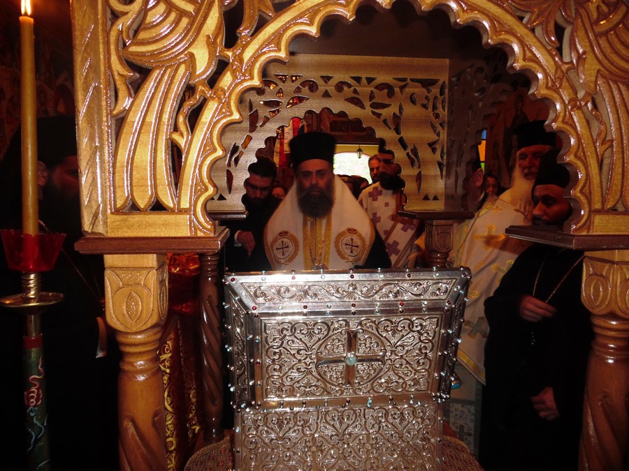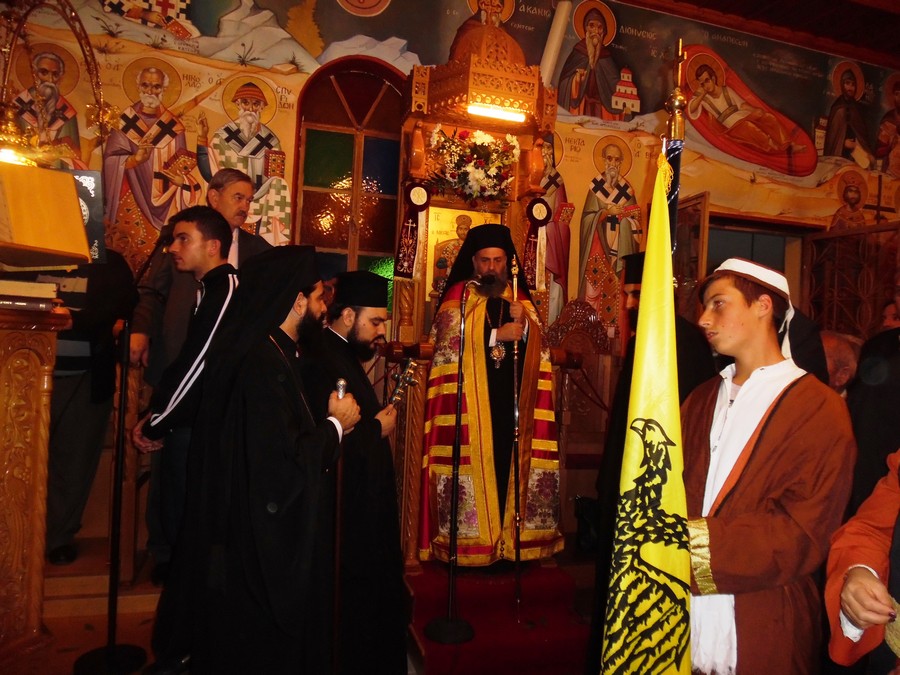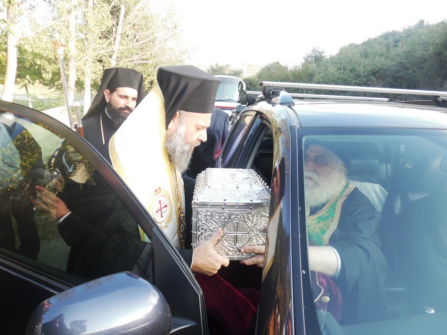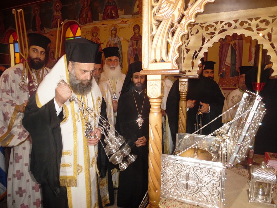 Μεταξύ άλλων ανέφερε: «Με αισθήματα χαράς και αγαλλίασης υποδεχόμαστε τον Άγιό μας στον δικό του τόπο, στον τόπο που ασκήθηκε και μαρτύρησε».