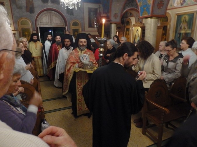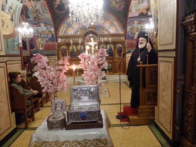 Εχθές τελέσθηκε μέγας πανηγυρικός Αρχιερατικός Εσπερινός χοροστατούντος του Μητροπολίτη Διδυμοτέιχου, Ορεστιάδος και Σουφλίου κ. Δαμασκηνού, ενώ παρέστη συμπροσευχόμενος στο ιερό βήμα ο Μητροπολίτης Θεσσαλιώτιδος και Φαναριοφερσάλων κ. Τιμόθεος, ο οποίος υπήρξε επί σειρά ετών προϊστάμενος του ιερού ναού Αγίας Φιλοθέης. Στην συνέχεια τελέσθηκε ιερά αγρυπνία, παρουσία των τοπικών αρχών, αλλά και εκατοντάδων πιστών από όλη την Αττική που θέλησαν να προσκυνήσουν την κρύπτη της Κυράς των Αθηνών. Ήταν μία φυσική σπηλιά, την οποία η Αγία Φιλοθέη είχε διαμορφώσει σε παρεκκλήσι με κρυφό υπόγειο πέρασμα, για να προσεύχεται και να ξεφεύγει μαζί με τις καλόγριές της κατά τις επιδρομές των Τούρκων. Σήμερα το πρωί τελέσθηκε Όρθρος και Θεία Λειτουργία, ενώ το απόγευμα θα τελεσθεί Εσπερινός και Ιερά Παράκληση στην Αγία Φιλοθέη.