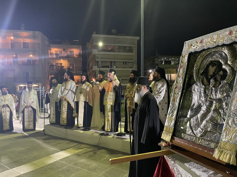 Το Σάββατο 29 Απριλίου 2023 τελέσθηκε η Ακολουθία του Εσπερινού Χοροστατούντος του Σεβασμιωτάτου Μητροπολίτου Τρίκκης, Γαρδικίου και Πύλης κ. Χρυσοστόμου. Πριν το τέλος του Εσπερινού ο Καθηγούμενος της Ιεράς Μονής Αγίας Παρασκευής Γιαννιτσών Πανοσιολογιώτατος Αρχιμανδρίτης Χερουβείμ Τσίνογλου κήρυξε εμπνευσμένα το Θείο Λόγο κάνοντας εκτενή αναφορά στο πρόσωπο της Υπεραγίας Θεοτόκου. Μετά το πέρας ακολούθησε η Ιερά Λιτάνευση της Ιεράς Εικόνος στα στενά της περιοχής του Βαρουσίου με κατεύθυνση την Πλατεία Αριστοτέλη Αντωνίου. Εκεί τελέσθηκε η ακολουθία της Αρτοκλασίας.