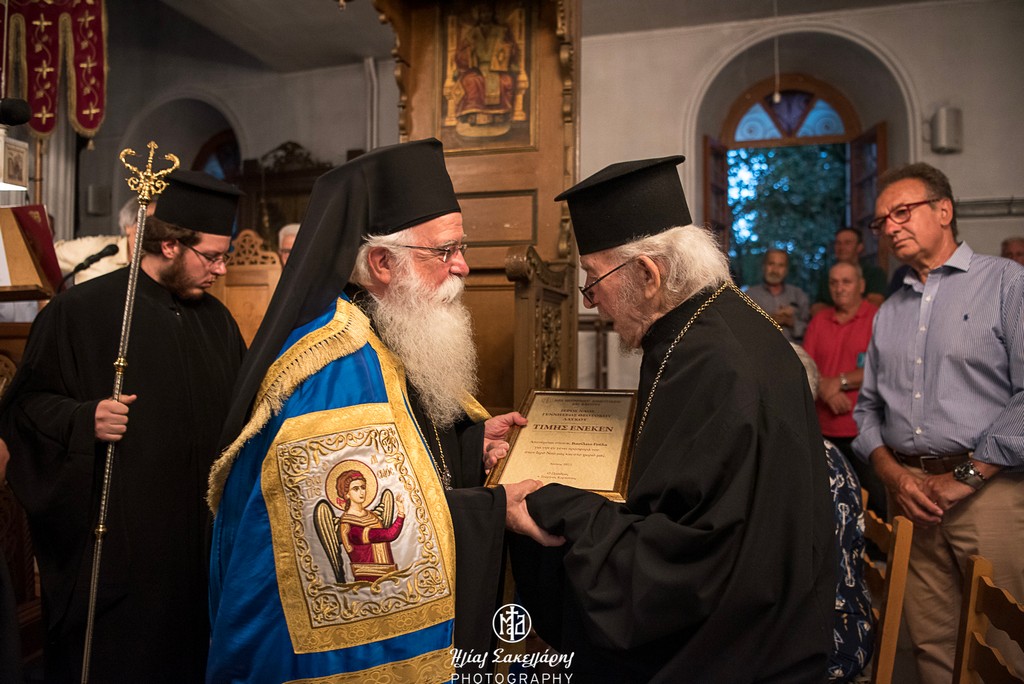Ακολούθως, ο Ποιμενάρχης μας απένειμε στον π. Βασίλειο τιμητικό Δίπλωμα, κι εκείνος συγκινημένος ευχαρίστησε για την μεγάλη τιμή τον Σεβασμιώτατο και όλους τους ενορίτες του.