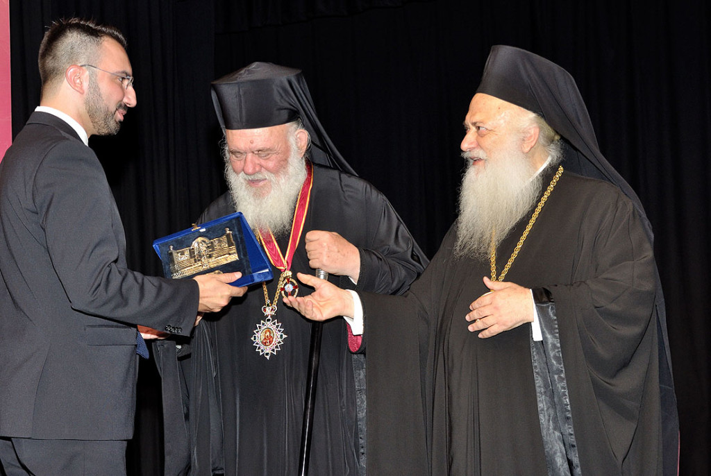 Στο τέλος της πρώτης συνεδρίας ο μητροπολίτης Βεροίας τίμησε τον κ. Ιερώνυμο με το παράσημο των Παυλείων, που κυκλοφόρησε για την επέτειο της εικοσαετίας.