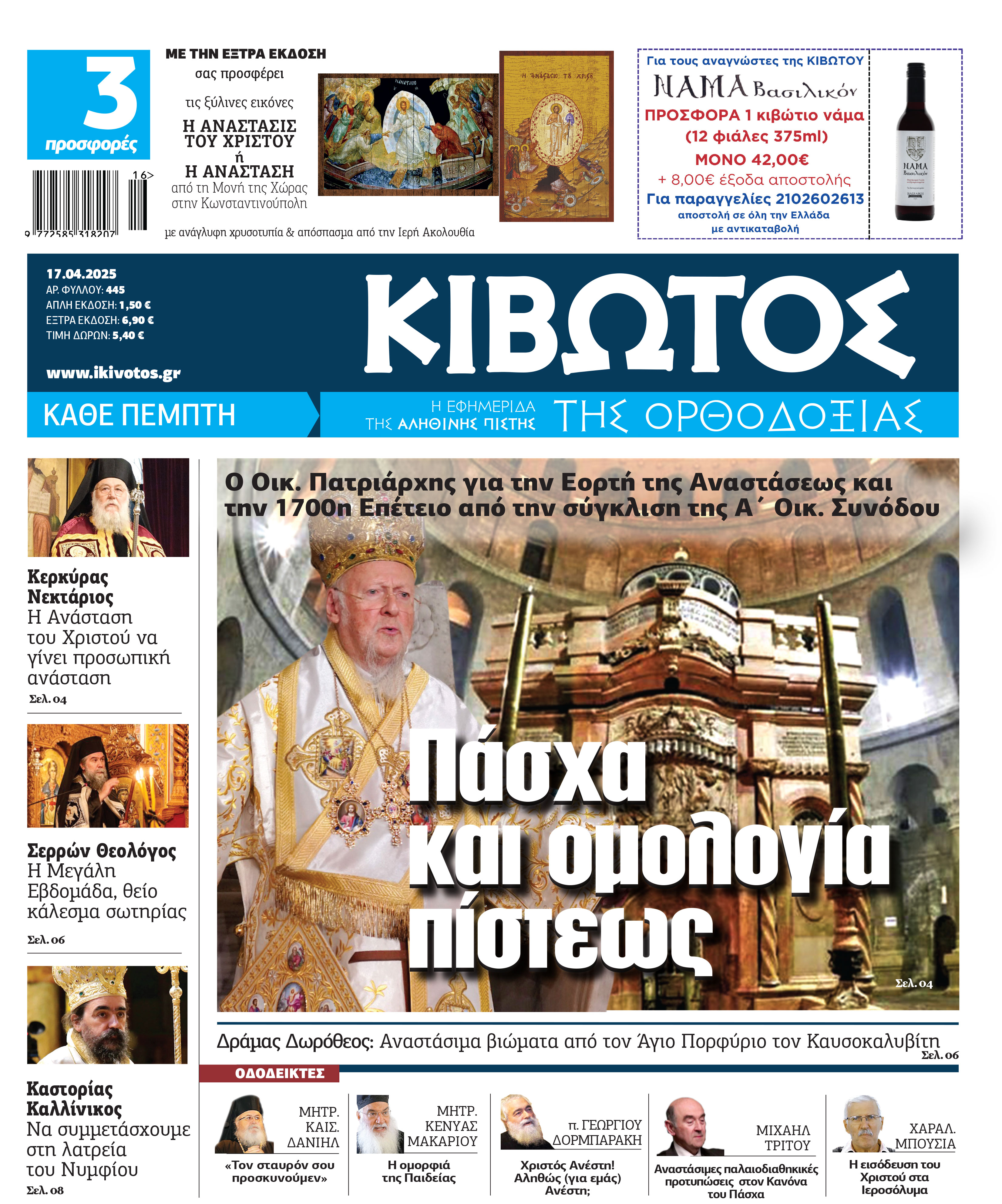 η εφημερίδα Κιβωτός της Ορθοδοξίας