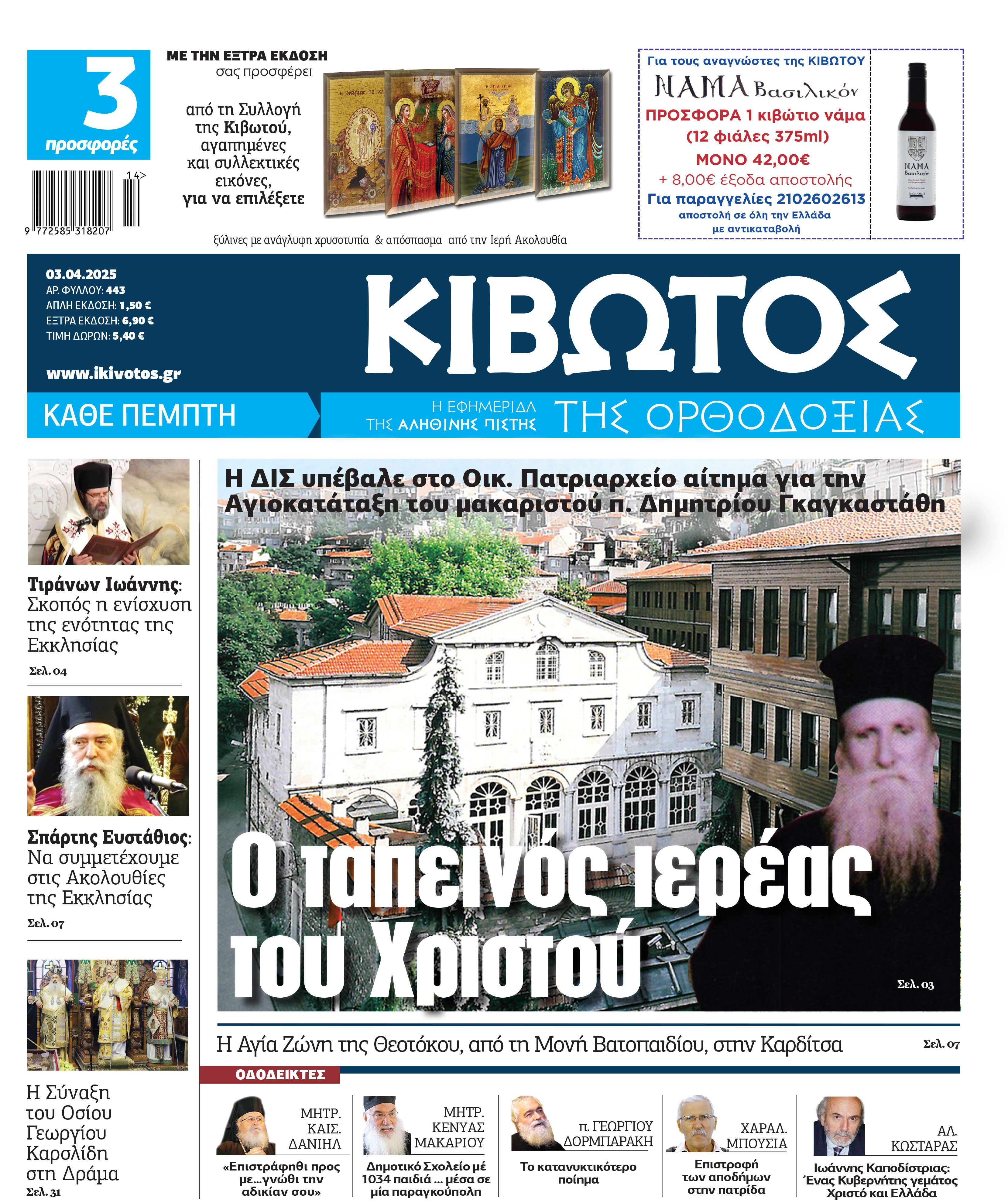 η εφημερίδα Κιβωτός της Ορθοδοξίας