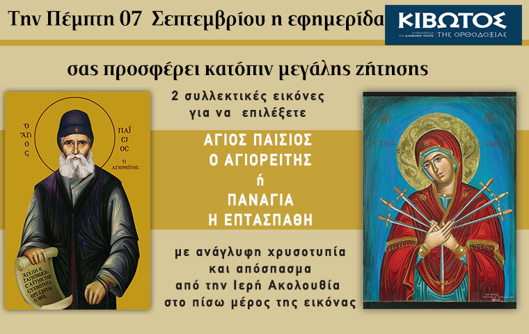 Την Πέμπτη, 07 Σεπτεμβρίου, κυκλοφορεί το νέο φύλλο της Εφημερίδας «Κιβωτός της Ορθοδοξίας»