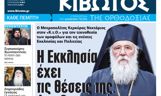 - Η Εκκλησία έχει τις θέσεις της. Δεν θα σιωπήσουμε – Ο Μητροπολίτης Κερκύρας Νεκτάριος στην «Κ.τ.Ο.» για την τεκνοθεσία των ομοφύλων και τις σχέσεις Εκκλησίας και Πολιτείας