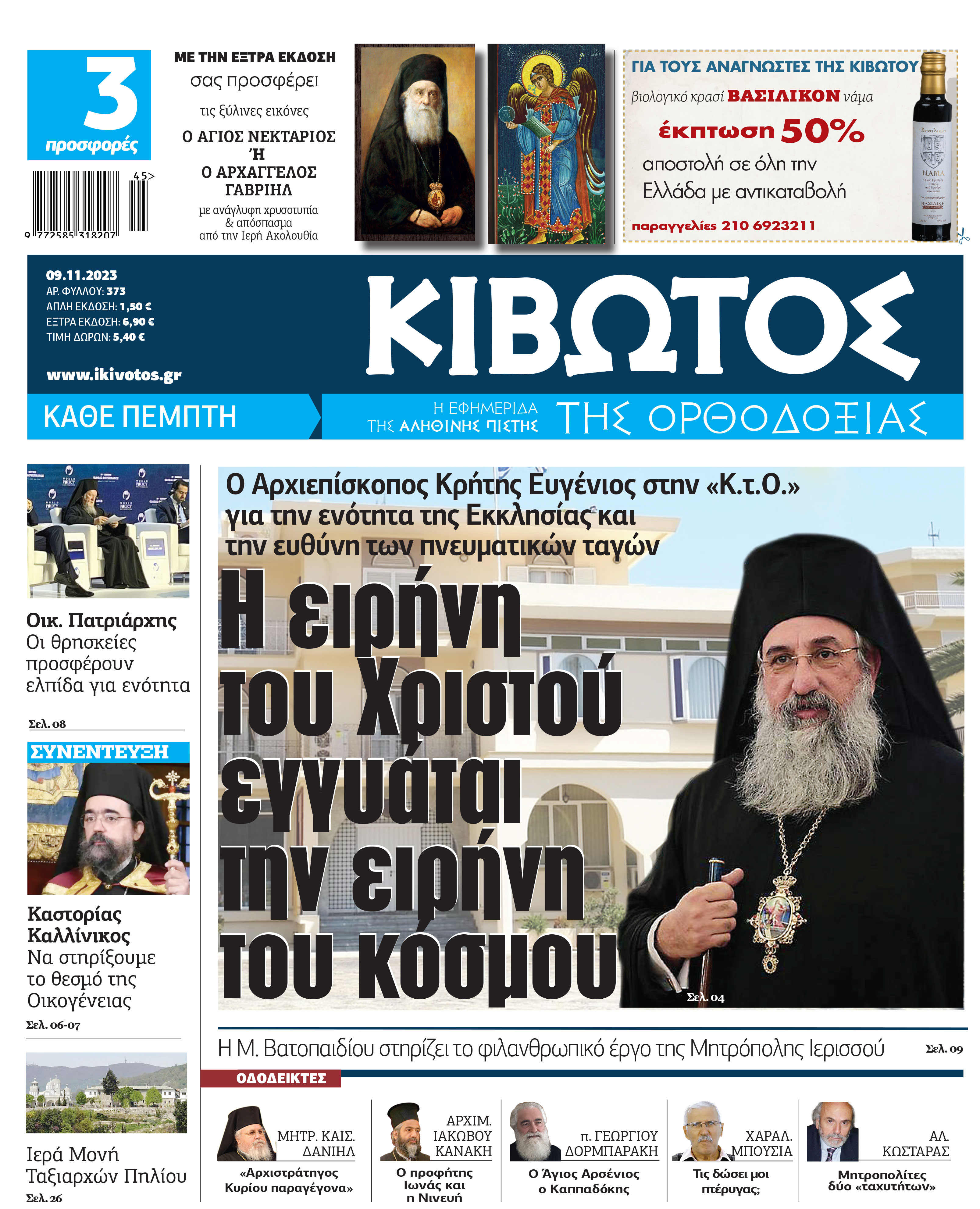 Οι Προσφορές της εφημερίδας ΚΙΒΩΤΟΣ ΤΗΣ ΟΡΘΟΔΟΞΙΑΣ, την Πέμπτη, 09 Νοεμβρίου 2023