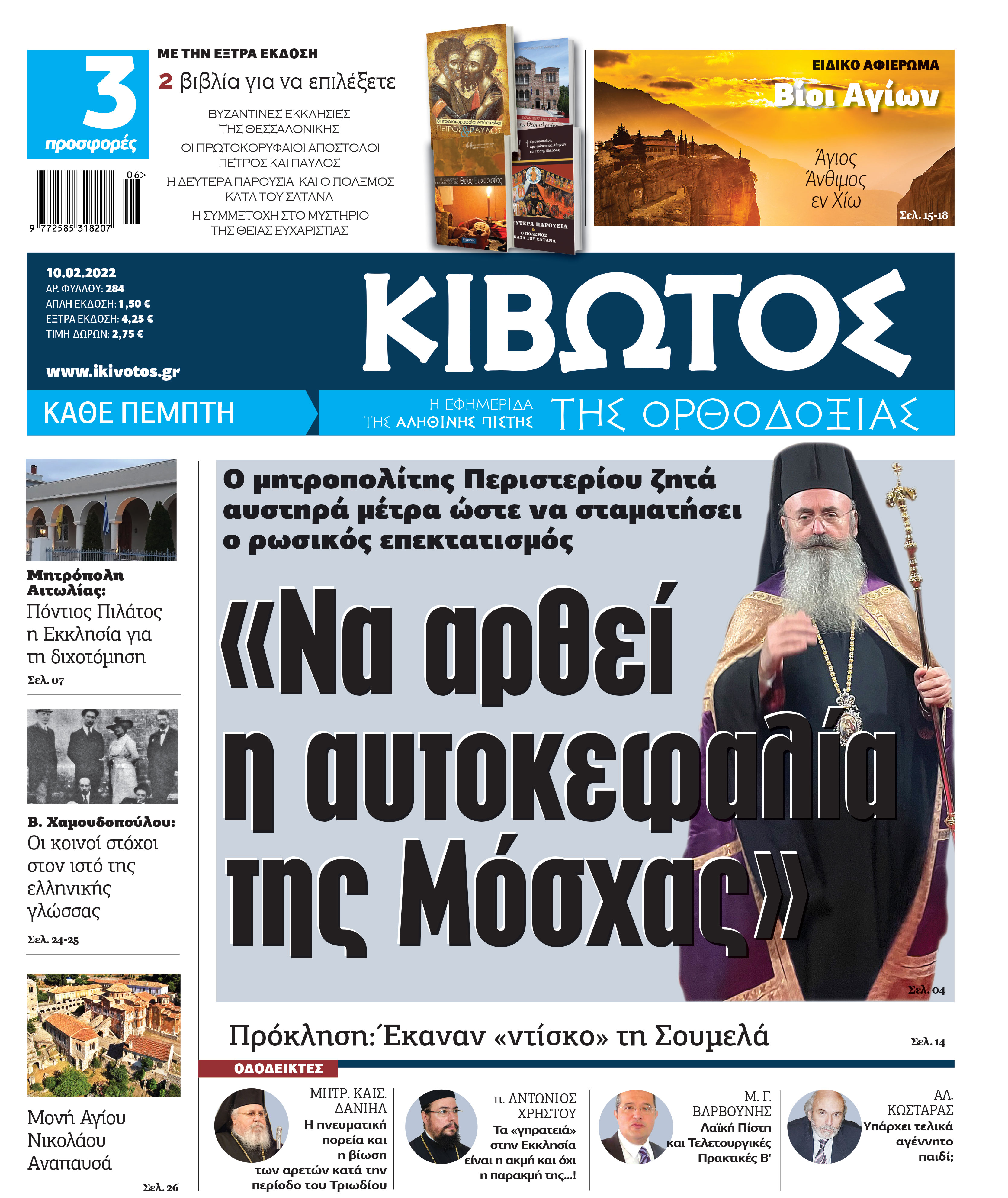 Δείτε τις Προσφορές εδώ: Την Πέμπτη, 10 Φεβρουαρίου 2022, κυκλοφορεί το νέο φύλλο της Εφημερίδας «Κιβωτός της Ορθοδοξίας» | Dogma