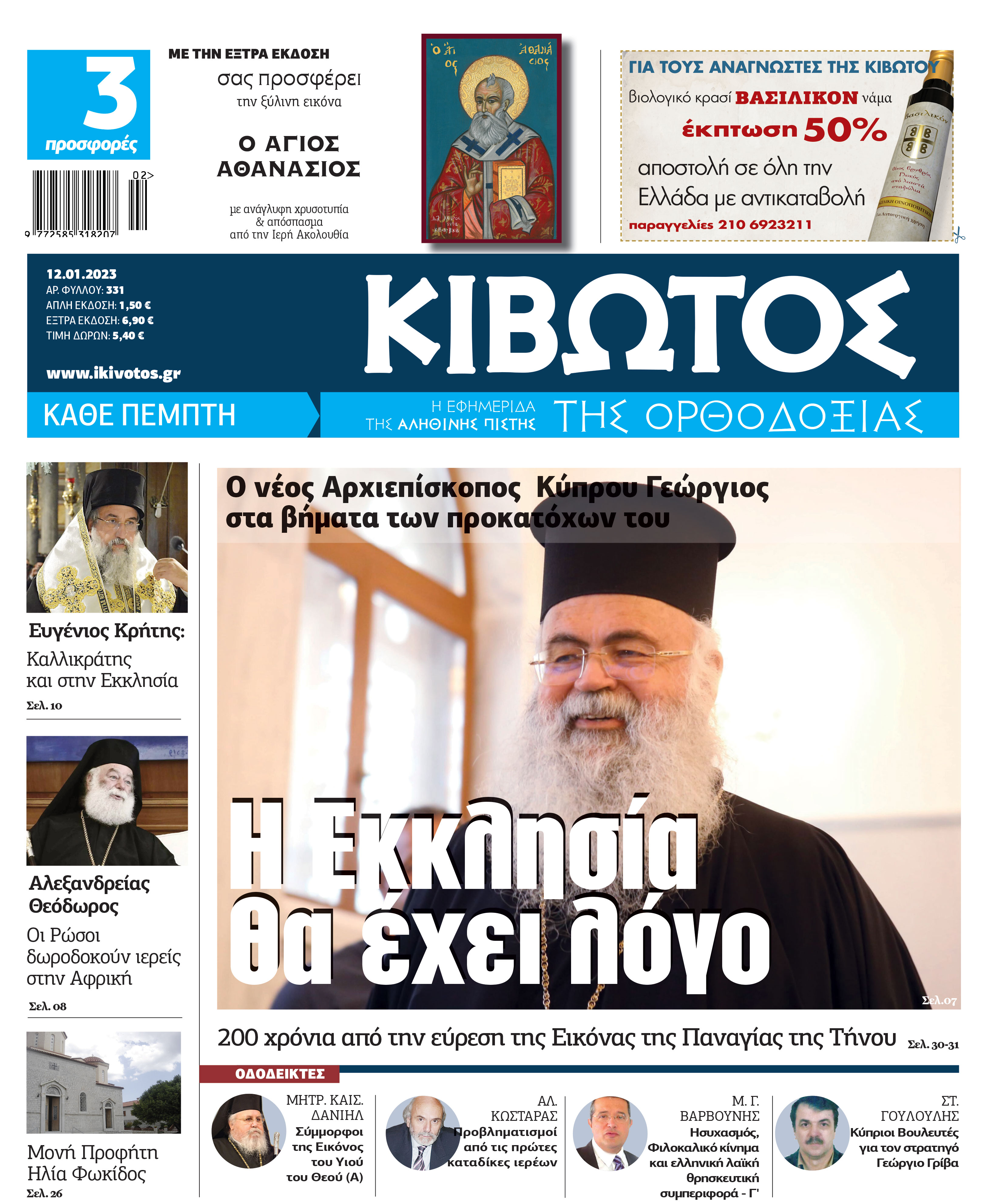 Το νέο φύλλο της εφημερίδας ΚΙΒΩΤΟΣ ΤΗΣ ΟΡΘΟΔΟΞΙΑΣ, που κυκλοφορεί την Πέμπτη, 12 Ιανουαρίου. Όλες οι Προσφορές!