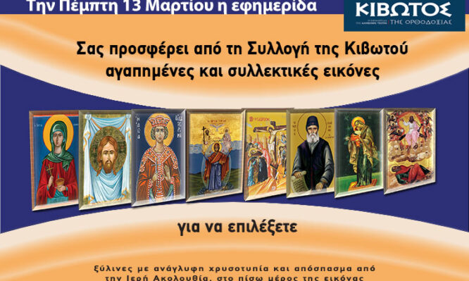 Την Πέμπτη, 13 Μαρτίου, κυκλοφορεί το νέο φύλλο της Εφημερίδας «Κιβωτός της Ορθοδοξίας» – Όλες οι Προσφορές