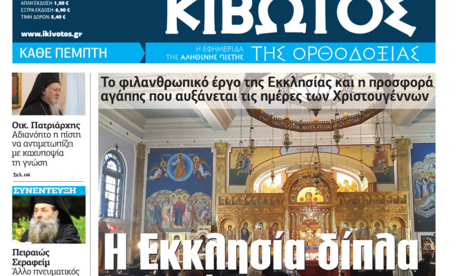 Την Πέμπτη, 14 Δεκεμβρίου, κυκλοφορεί το νέο φύλλο της Εφημερίδας «Κιβωτός της Ορθοδοξίας»