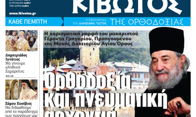 Την Πέμπτη, 14 Νοεμβρίου, κυκλοφορεί το νέο φύλλο της Εφημερίδας «Κιβωτός της Ορθοδοξίας»