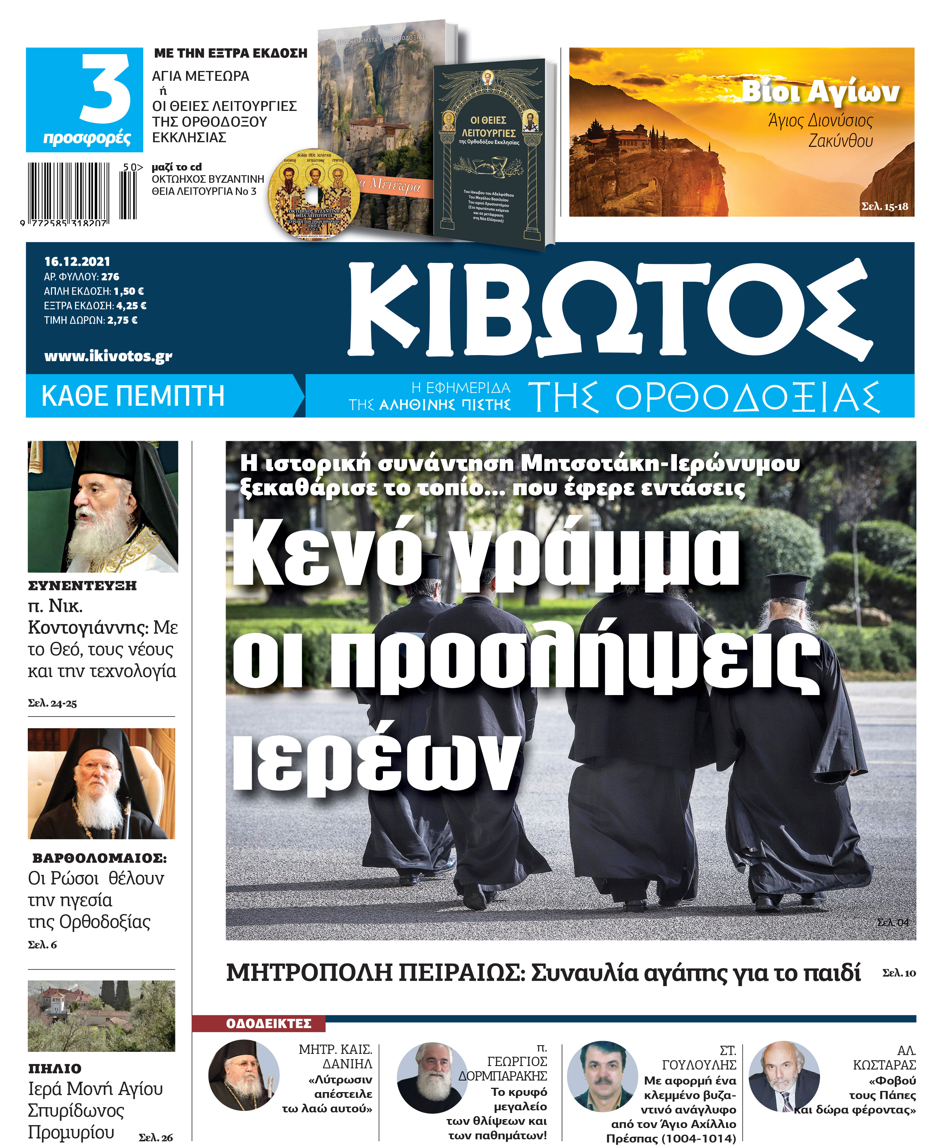 Δείτε τις Προσφορές εδώ: Την Πέμπτη, 16 Δεκεμβρίου 2021, κυκλοφορεί το νέο φύλλο της Εφημερίδας «Κιβωτός της Ορθοδοξίας». | Dogma
