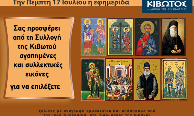 Την Πέμπτη, 17 Ιουλίου, κυκλοφορεί το νέο φύλλο της Εφημερίδας «Κιβωτός της Ορθοδοξίας» – Όλες οι Προσφορές