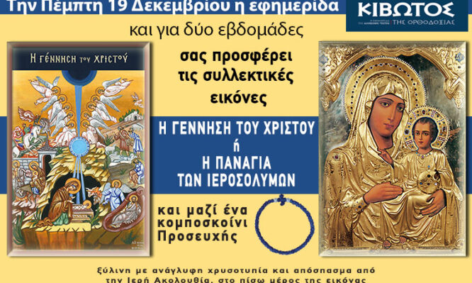 Την Πέμπτη, 19 Δεκεμβρίου, κυκλοφορεί το νέο φύλλο της Εφημερίδας «Κιβωτός της Ορθοδοξίας» – Όλες οι Προσφορές