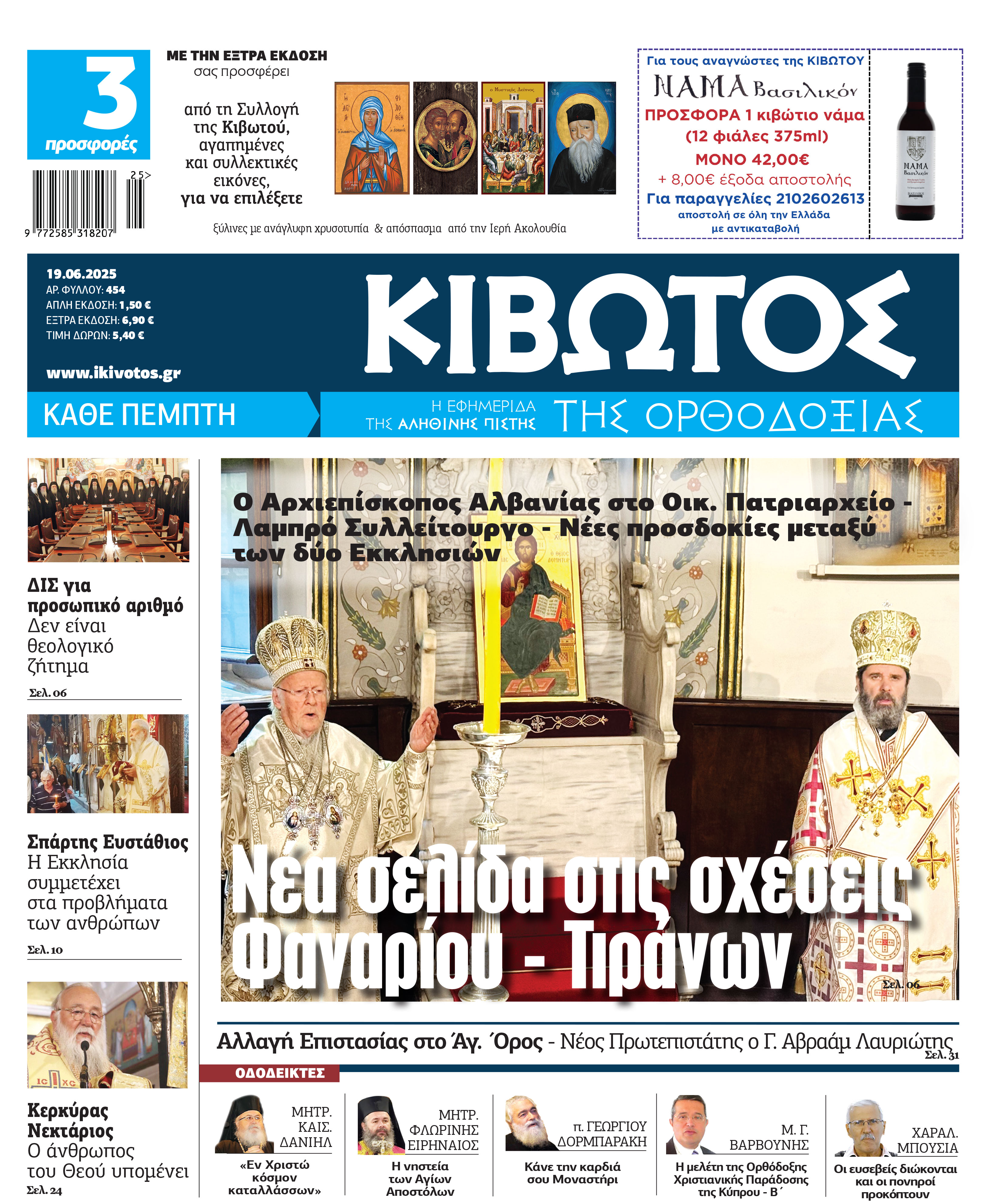 Την Πέμπτη, 19 Ιουνίου, κυκλοφορεί το νέο φύλλο της Εφημερίδας «Κιβωτός της Ορθοδοξίας»