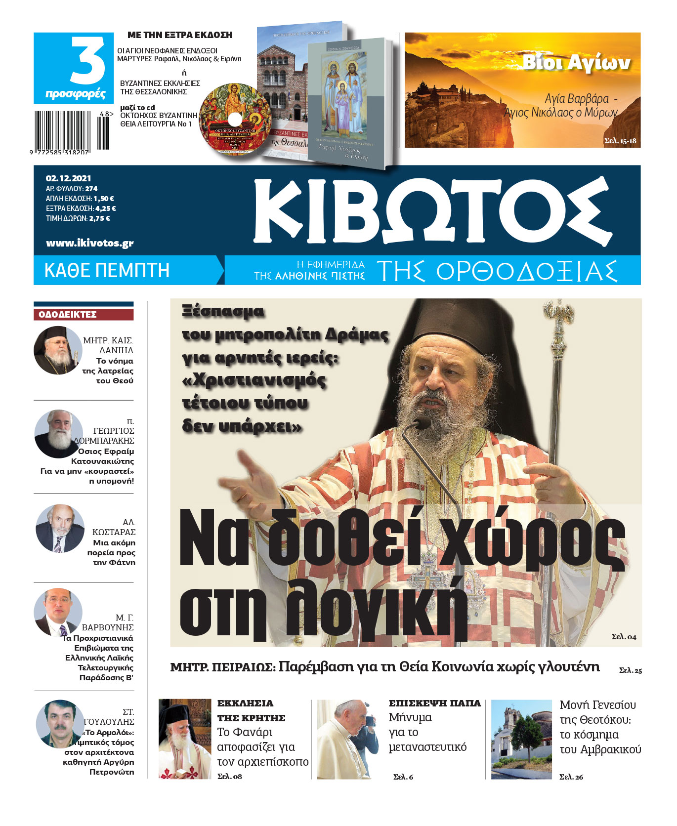 Δείτε τις Προσφορές εδώ: Την Πέμπτη, 02 Δεκεμβρίου 2021, κυκλοφορεί το νέο φύλλο της Εφημερίδας «Κιβωτός της Ορθοδοξίας» | Dogma