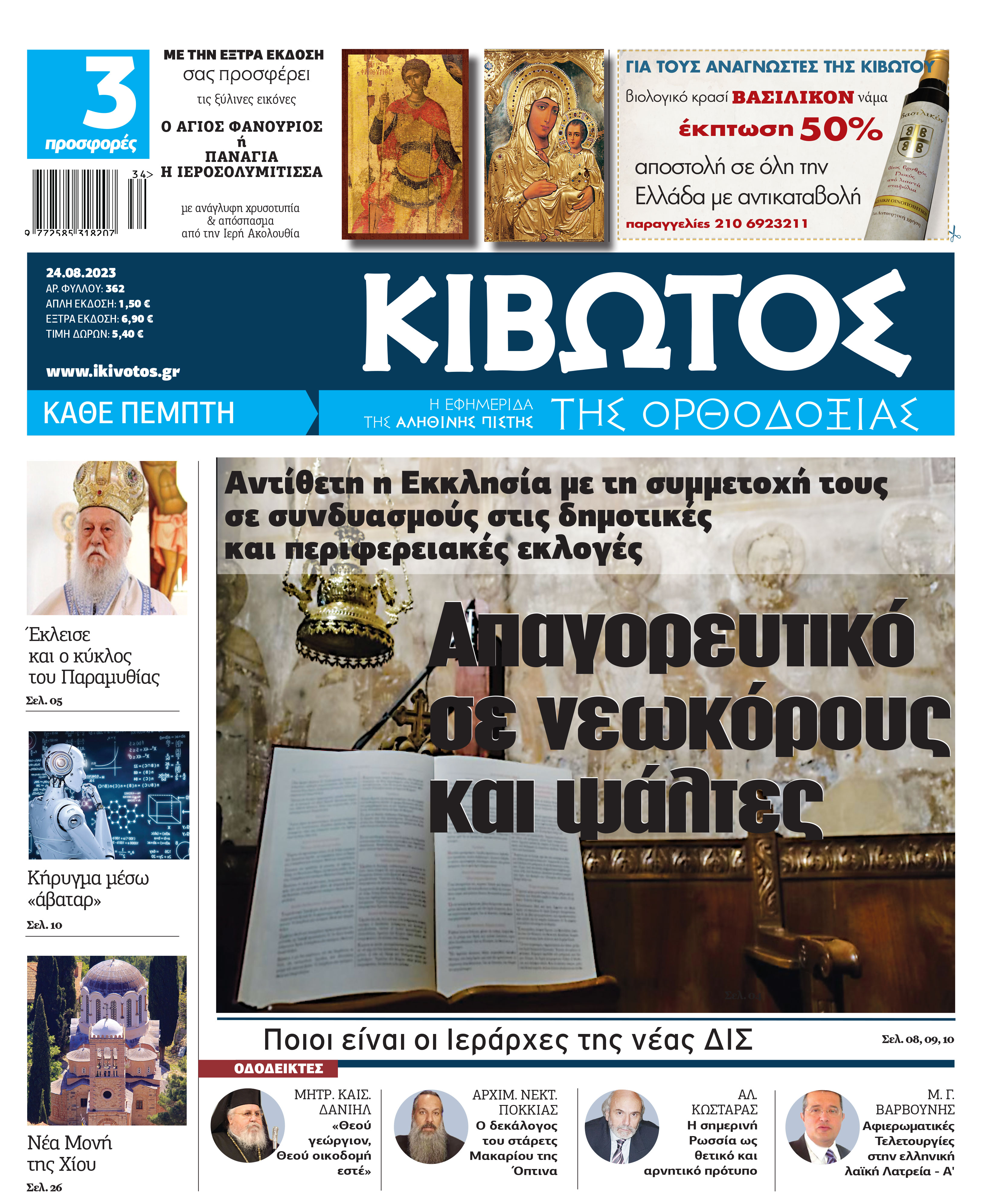 Οι Προσφορές της εφημερίδας ΚΙΒΩΤΟΣ ΤΗΣ ΟΡΘΟΔΟΞΙΑΣ, την Πέμπτη, 24 Αυγούστου 2023