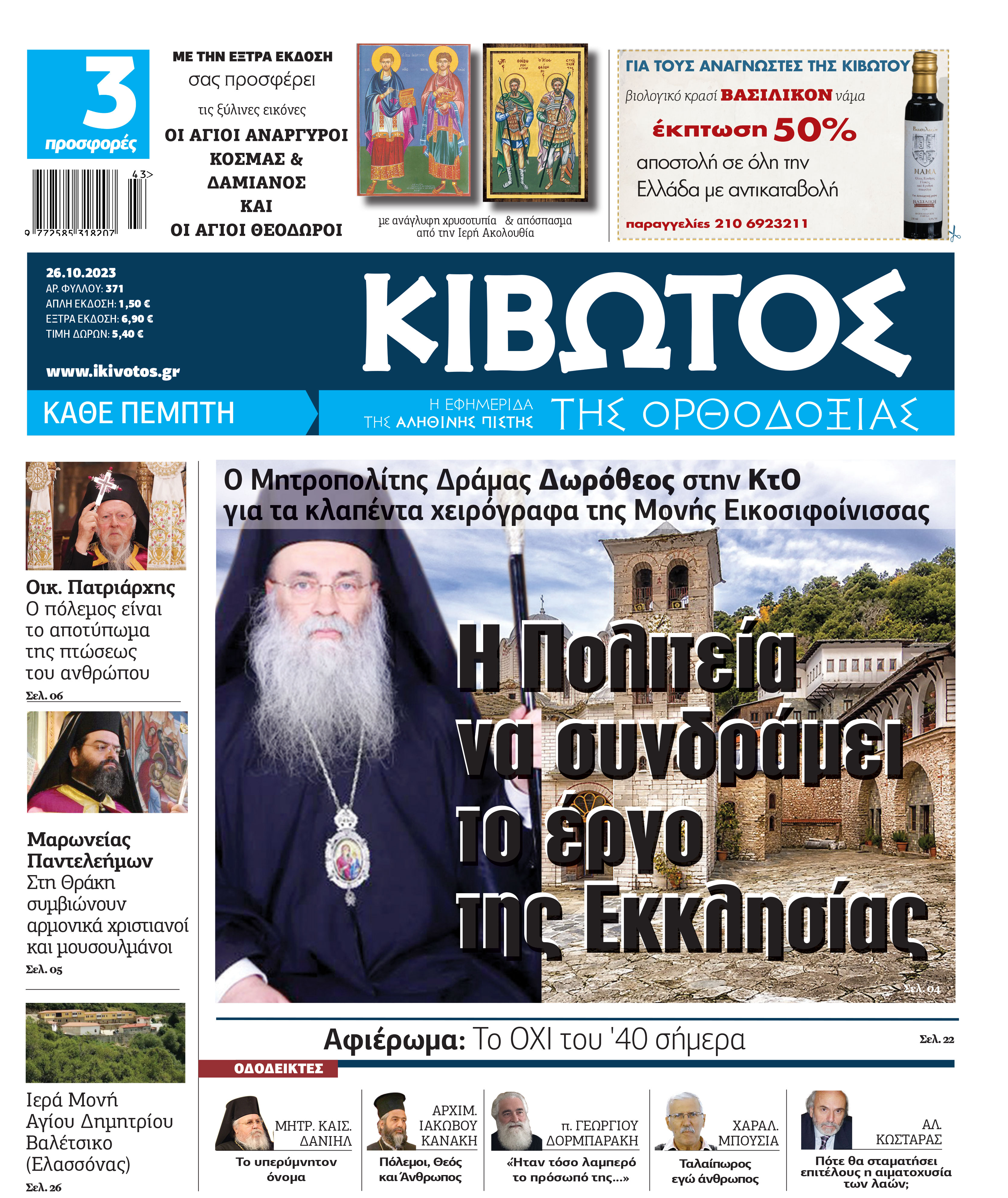 Οι Προσφορές της εφημερίδας ΚΙΒΩΤΟΣ ΤΗΣ ΟΡΘΟΔΟΞΙΑΣ, την Πέμπτη, 26 Οκτωβρίου 2023