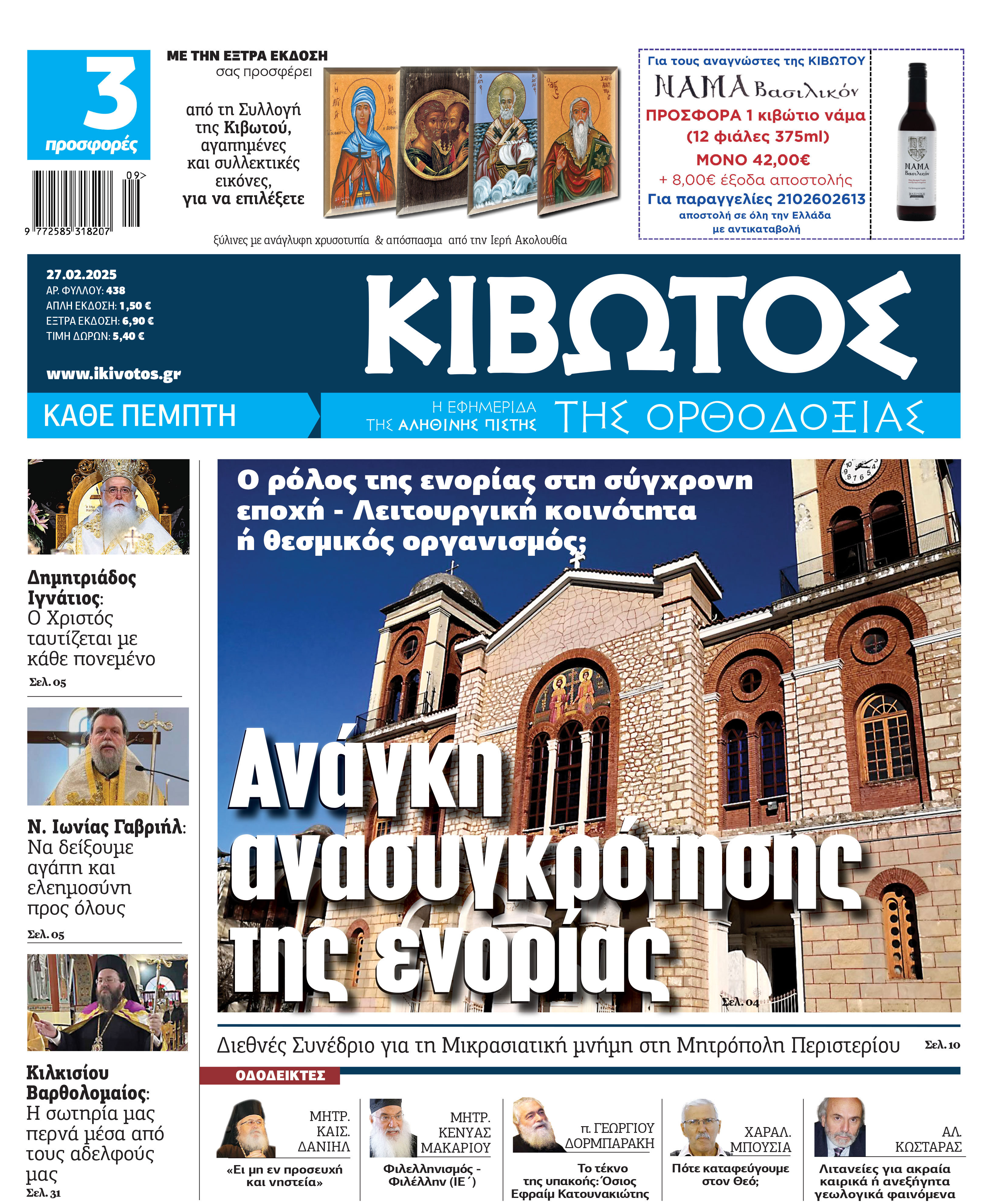 Την Πέμπτη, 27 Φεβρουαρίου, κυκλοφορεί το νέο φύλλο της Εφημερίδας «Κιβωτός της Ορθοδοξίας»