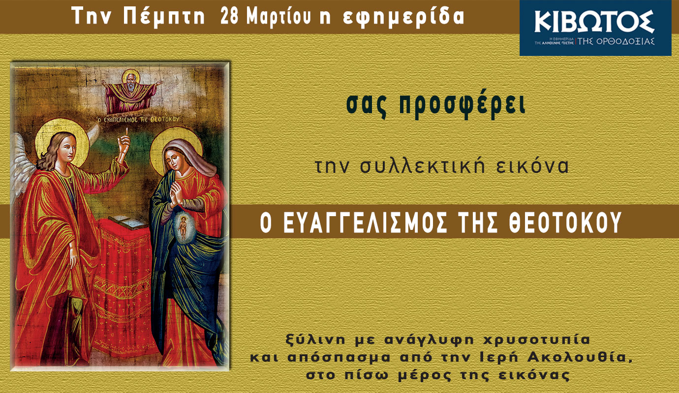 Την Πέμπτη, 28 Μαρτίου, κυκλοφορεί το νέο φύλλο της Εφημερίδας «Κιβωτός της Ορθοδοξίας»