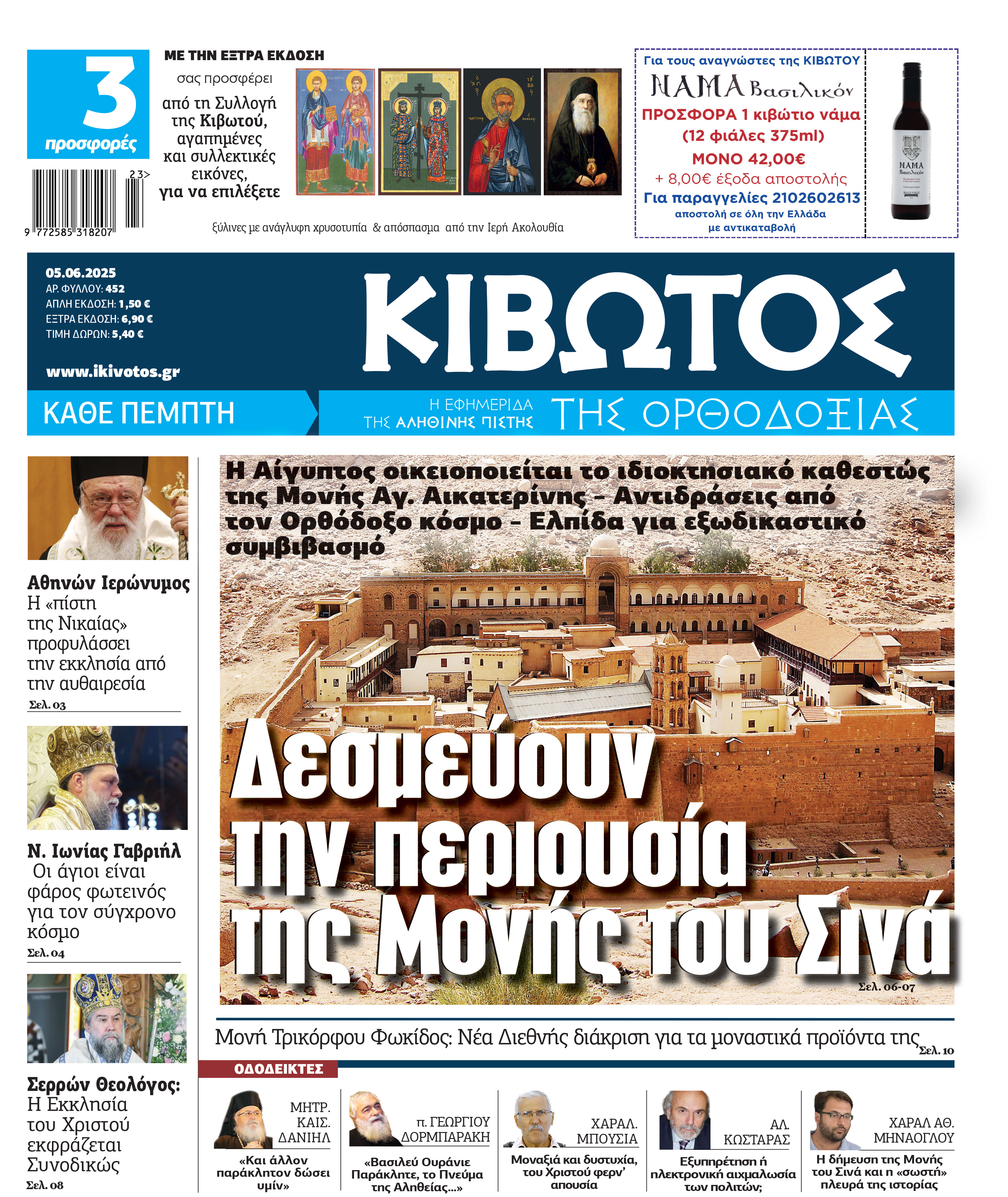 Την Πέμπτη, 5 Ιουνίου, κυκλοφορεί το νέο φύλλο της Εφημερίδας «Κιβωτός της Ορθοδοξίας»