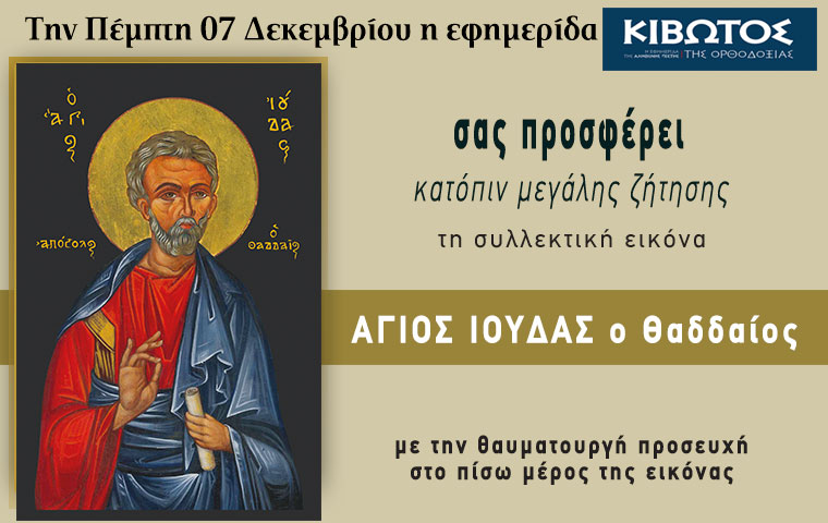 Την Πέμπτη, 7 Δεκεμβρίου, κυκλοφορεί το νέο φύλλο της Εφημερίδας «Κιβωτός της Ορθοδοξίας»