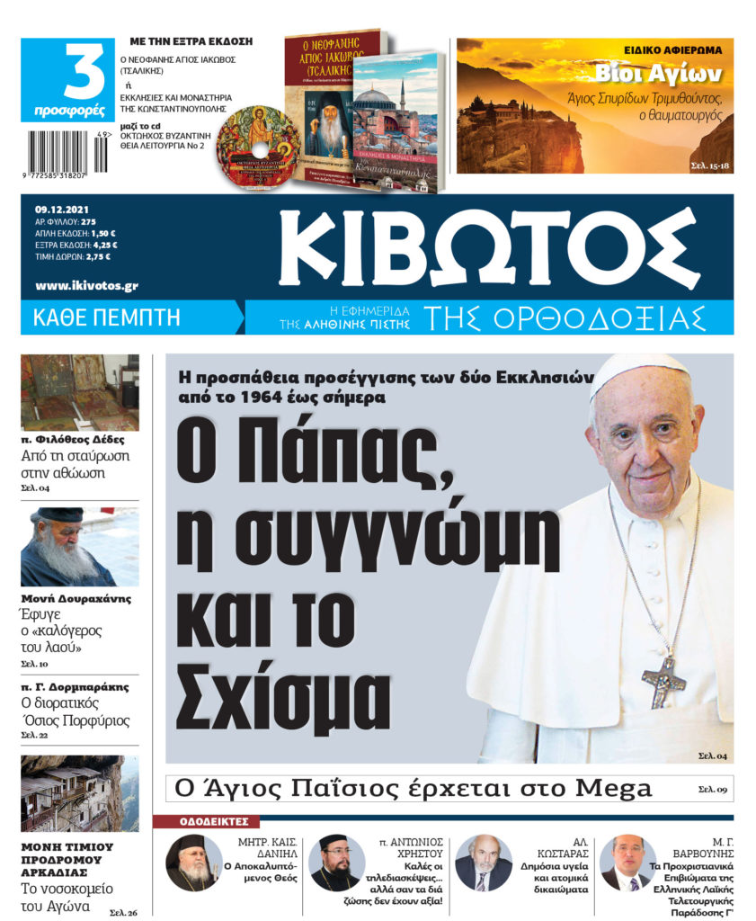 Δείτε τις Προσφορές εδώ: Την Πέμπτη, 09 Δεκεμβρίου 2021, κυκλοφορεί το νέο φύλλο της Εφημερίδας «Κιβωτός της Ορθοδοξίας» | Dogma