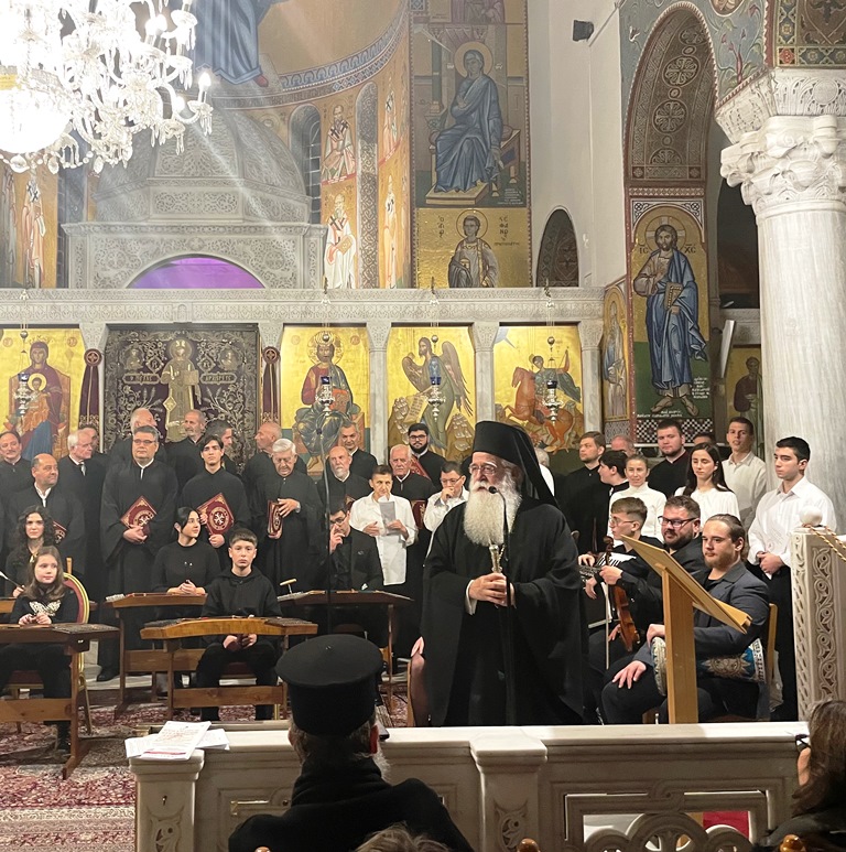 Η μουσική αυτή εκδήλωση έκλεισε με τον χαιρετισμό του Σεβ. Μητροπολίτου μας κ. Ιγνατίου, ο οποίος συνεχάρη τις χορωδίες για την εξαιρετική τους εμφάνιση, δίδοντας ιδιαίτερη έμφαση στις δύο χορωδίες της Σχολής Βυζαντινής Μουσικής, στις οποίες αποτυπώνεται το μέλλον της Ψαλτικής στον τόπο μας, στην παρουσία του Γυναικείου χορού, που δίδει ένα άλλο χρώμα στα μουσικά ακούσματα, αλλά και στο έργο που επιτελεί η καταξιωμένη Χορωδία του Συνδέσμου των Ιεροψαλτών. Ο κ. Ιγνάτιος τόνισε ότι «η εν λόγω εκδήλωση μας προετοιμάζει για το μεγάλο Μυστήριο, ενώ μας έκανε να καταλάβουμε τί σημαίνει Λατρεία, Ελληνική γλώσσα, ποίηση της Εκκλησίας». Ο Ποιμενάρχης μας επαίνεσε την ενορία του Αγίου Νεκταρίου για την σύσταση του Καλλιτεχνικού Εργαστηρίου και τον Προϊστάμενό της Οικονόμο π. Ιωάννη Σωτηρόπουλο και ευχαρίστησε όλους όσοι στηρίζουν τέτοιες προσπάθειες. Τέλος, κάλεσε όλους να προετοιμαστούμε για να υποδεχθούμε τον Χριστό στην φάτνη της καρδιάς μας, με τρόπο πνευματικό και φιλάνθρωπο.