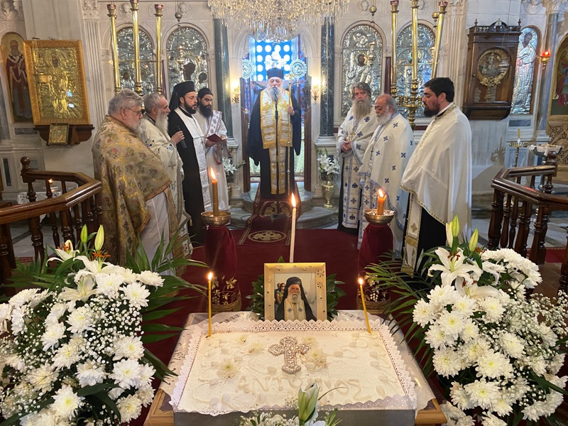 Ο Σεβασμιώτατος συμμετείχε συμπροσευχόμενος στην τελεσθείσα Θεία Λειτουργία και κατά την διάρκεια του Κοινωνικού κήρυξε τον θείο λόγο. Εν συνεχεία προέστη του Ιερού Μνημοσύνου, με την συμμετοχή κληρικών της νήσου Νάξου, στο τέλος του οποίου, ο κ. Ιάκωβος Στρούβαλης ανέγνωσε ποίημα αφιερωμένο στον εκλιπόντα π. Αντώνιο.