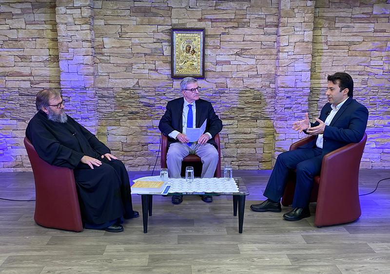 Συμμετείχαν, ο κ. Κωνσταντίνος Χολέβας, Πολιτικός Επιστήμων, συνεργάτης της Ειδικής Συνοδικής Επιτροπής Πολιτιστικής Ταυτότητος, ο Αρχιμανδρίτης π. Δαμασκηνός Πετράκος, Δρ Θεολογίας, Γραμματεύς της Ειδικής Συνοδικής Επιτροπής Πολιτιστικής Ταυτότητος και ο κ. Διονύσης Τσιριγώτης, Επίκουρος Καθηγητής Σύγχρονης Ελληνικής Ιστορίας, Διεθνών Σχέσεων & Διπλωματίας στο Πανεπιστήμιο Πειραιώς
